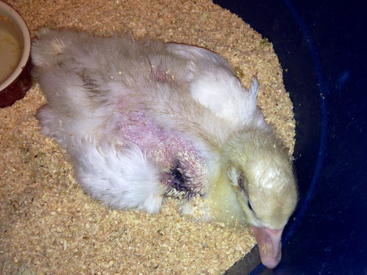 OMG how awful!!!!! I am so sorry that happen to the gosling. But as you can see never give up on a gosling..... I hope she makes it through surgery and heals well for you my dear. That baby has been through more than she needed. If you dog is like mine they love the goslings and do not mean to hurt them just wanted to play with them...