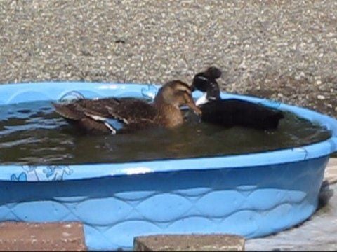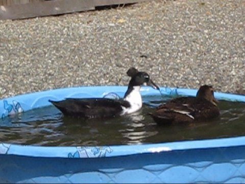 agree with Kevin, a female Rouen (Gloria) the other also appears to be a female (Donald) could be some sort of crested Black swedish? just guessing not knowing where he came from.