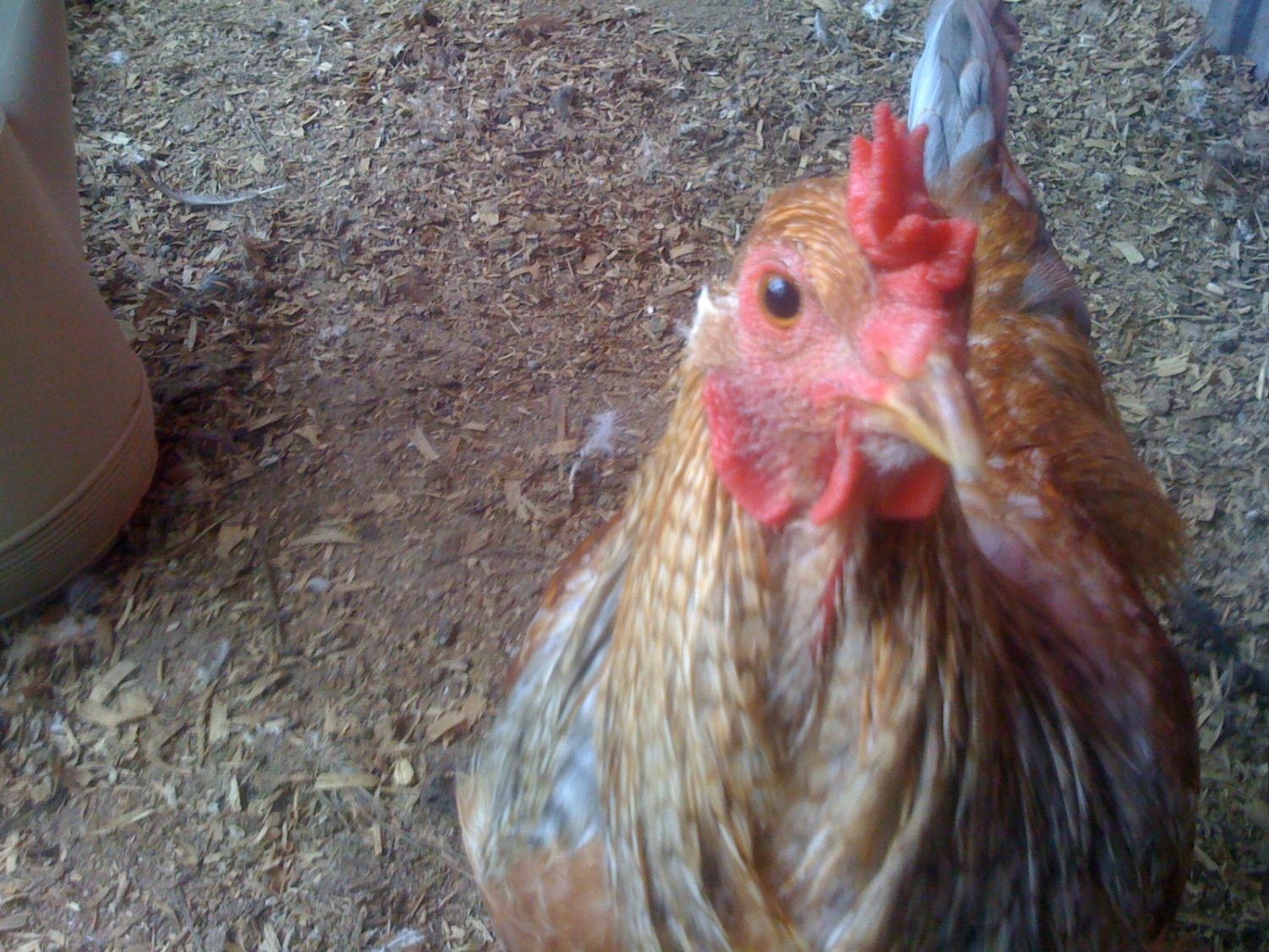 My almost blind roo realized I was taken pics. He got right in my camera and I got the best pic of him. He was the ugliest little bird baby but, my son fell in love with him. So we decided to keep him. He always acted funny and at about 4 or 5 months we realized he is almost blind. He was the ugliest baby we had and he has really turned into a beautiful rooster. I thought I would share this great pic.