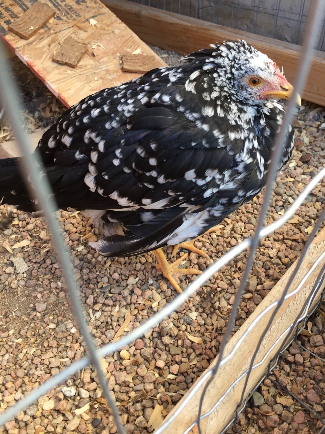 When I checked on my chickens this morning my Ancona wasn't flighty or anything she has just been standing and walking she is about 5 months now. I'm not sure if maybe she got bitten by a spider and that is why she is acting this way, or maybe she is going to lay her first egg? She usually has her feather laid down but she is fluffed up around the neck and her wings are droopy. Does anyone know what may be wrong? I will take a picture and insert it below.