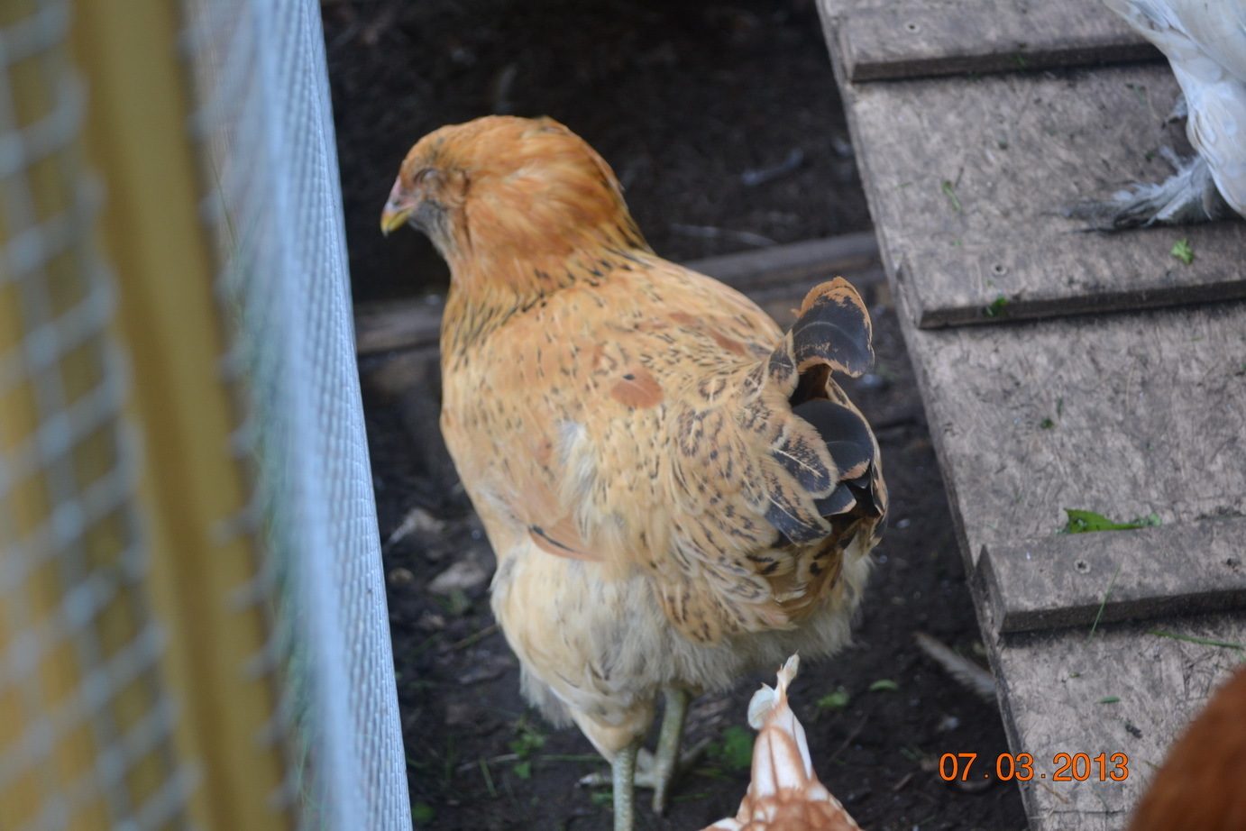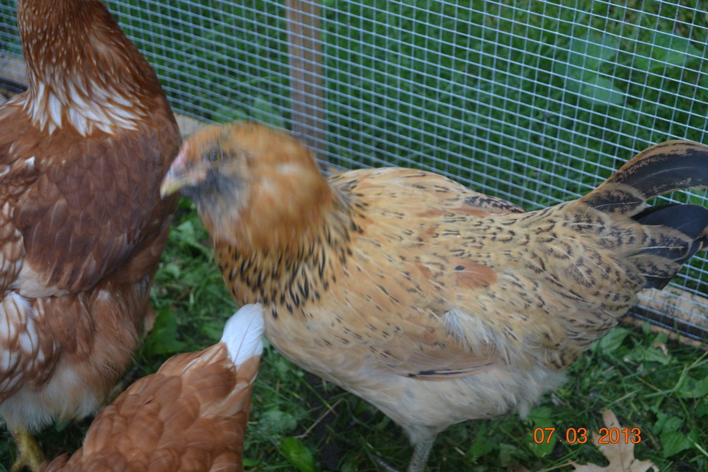 I switched their feed a couple weeks ago from "grower/finisher" (15% protein) to "layer" (16% protein) and they would have been about 18 weeks old. I also feed them "treats" from time to time of corn on the cob, watermelon, cucumbers, crackers, breads, mealworms, etc.
