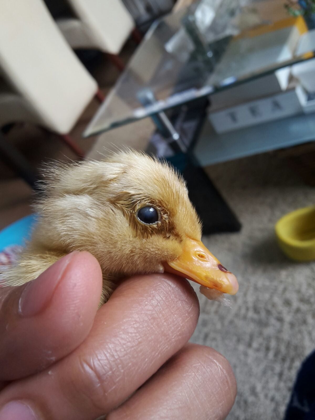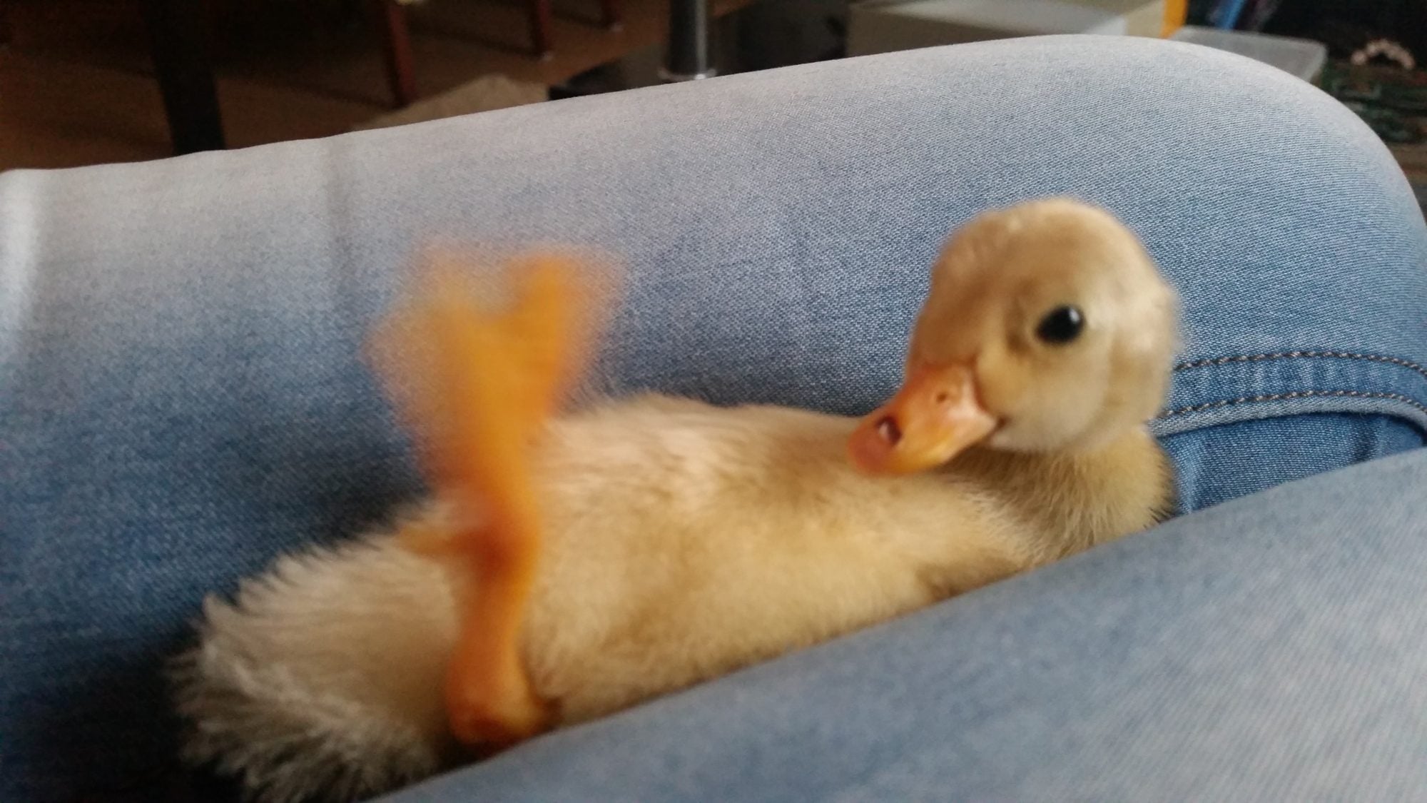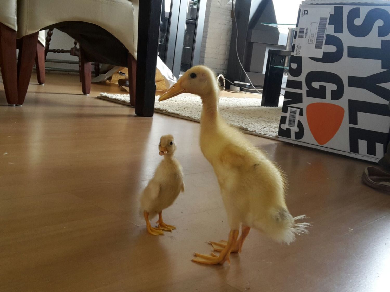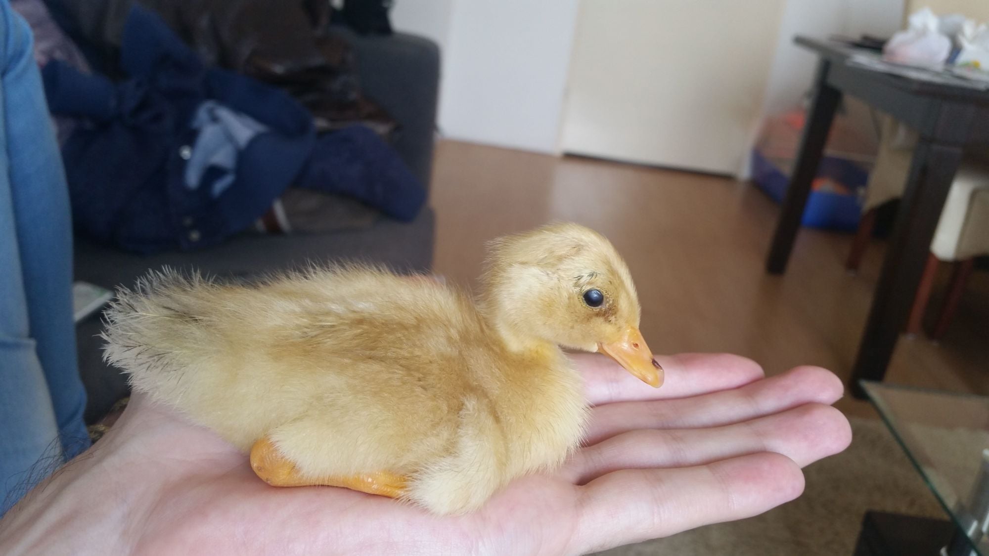 1 went to my aunt who has 2 more ducklings and 1 stayed with us. 4 weeks earlier we bought a runner duckling that someone else hatched and named her (probably her) Pip and the little one we named Lilly.