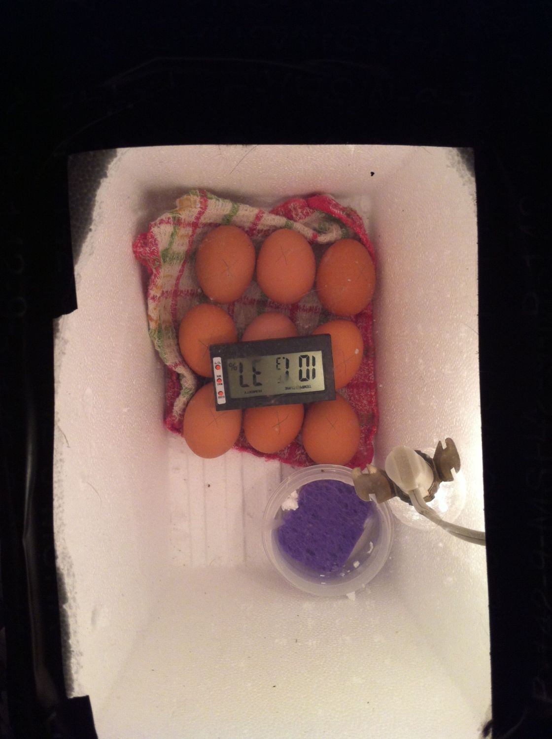 The weird angle makes the light look positioned weird, but it's actually directly above the eggs. It stays pretty even! Fingers crossed it works this time!