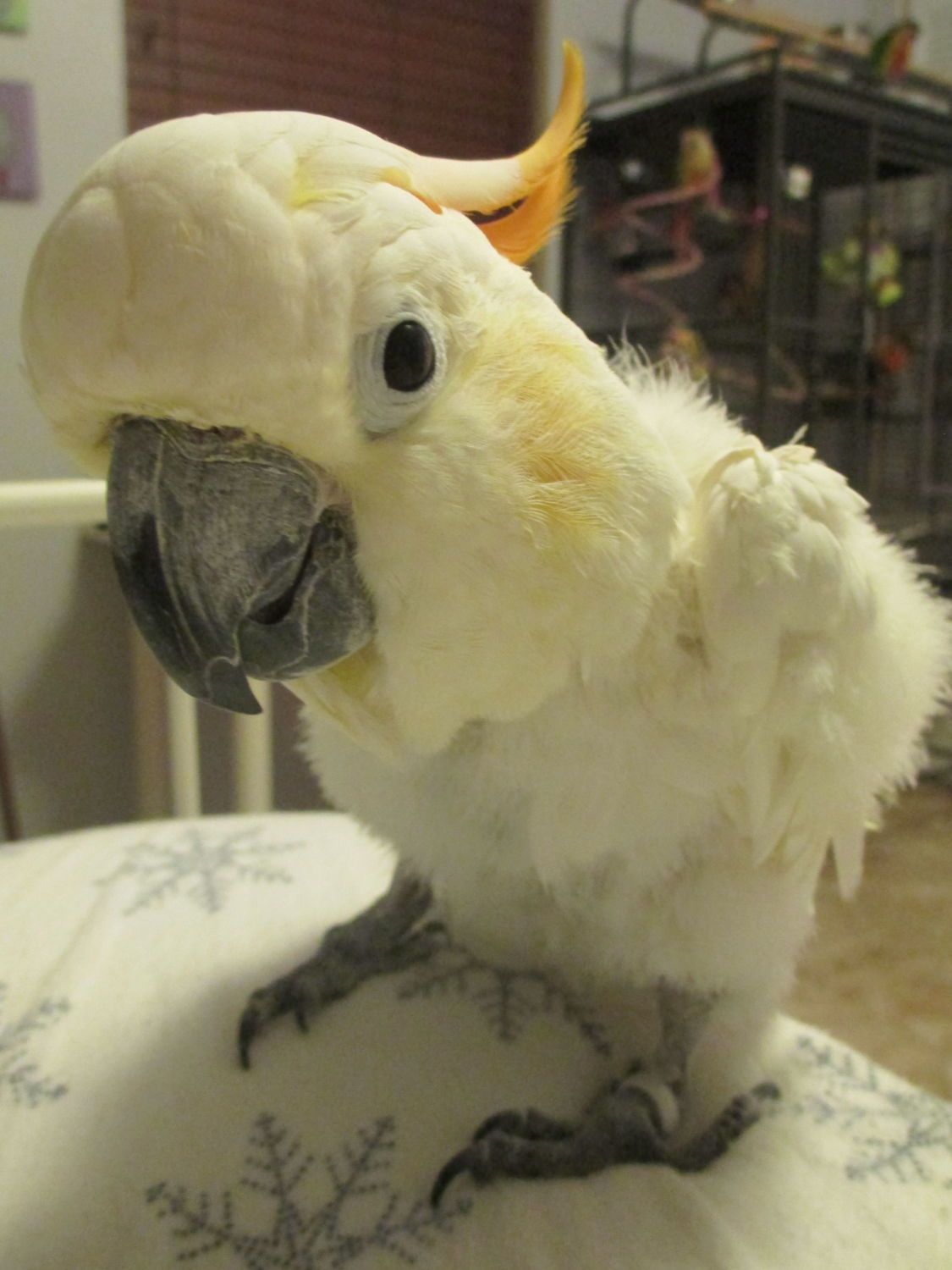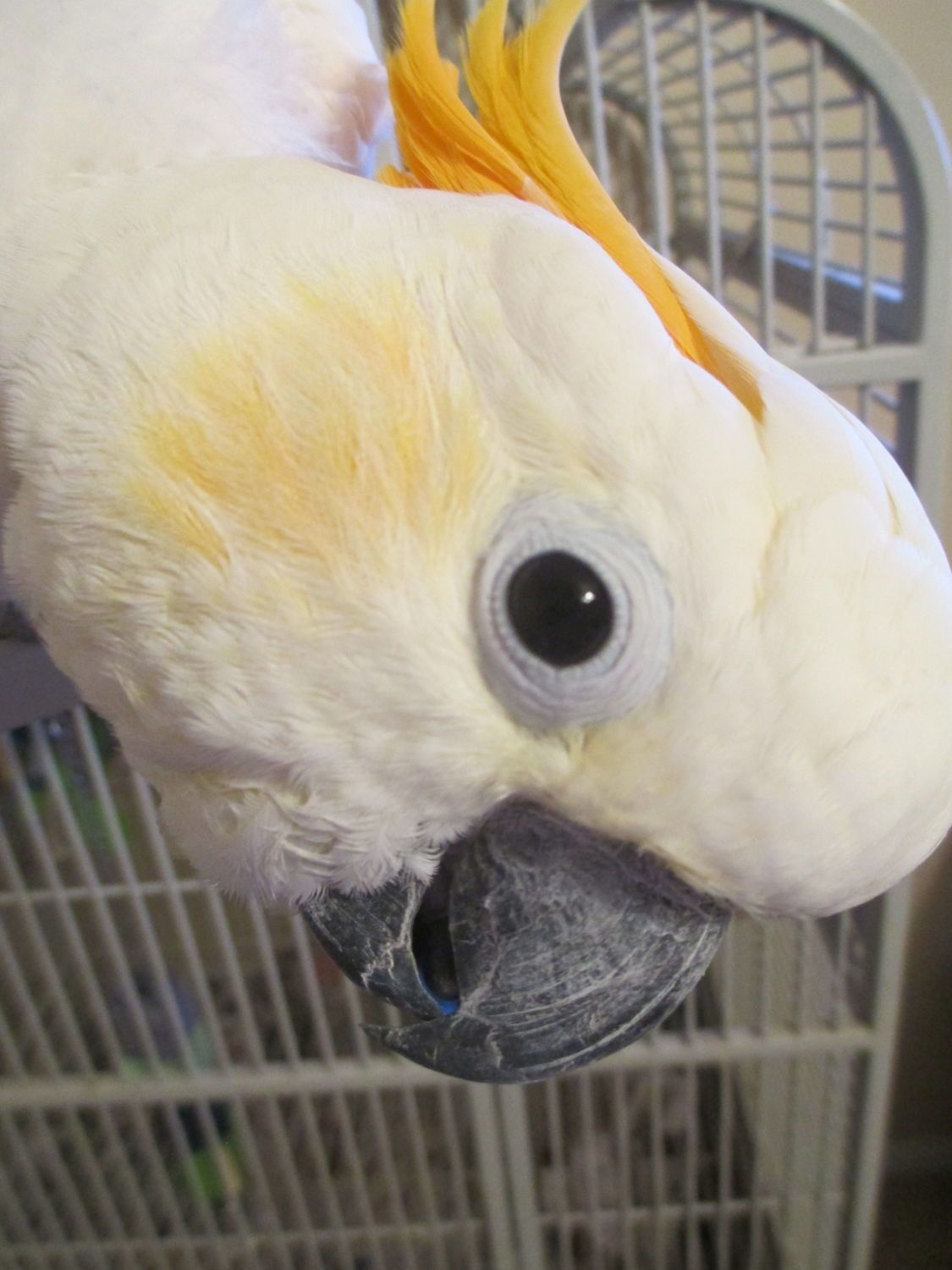 Jester is a 19 year old Citron Crested Cockatoo. He came into a friend's parrot rescue in early 2013, and was foster by another friend. When I met him, I fell in love with him. My whole family did! But at the time, there was another person who was interested in adopting him. A week or two later, I received a message that Jester's adopted had fallen through, and I was next on the list to adopt him! I was so happy, and a few days later, we finalized the adoption and Jester came to live with me! He has some bad history.... his previous owners had locked him in a small wire cage with no proper toys for 2 years. Poor guy. ): I had to work through some struggles with him, but now he is pretty good. He plucks out of habit, and I have tried everything to help him. He has his good and bad days with it. Right now he has some tail feathers, so that is good! He is very silly and I just adore him. He is a typical cockatoo. He loves to shred stuff, and he likes to scream. LOL. When he talks, he has the sweetest little voice. He loves to hang out outside, and he loves showers.