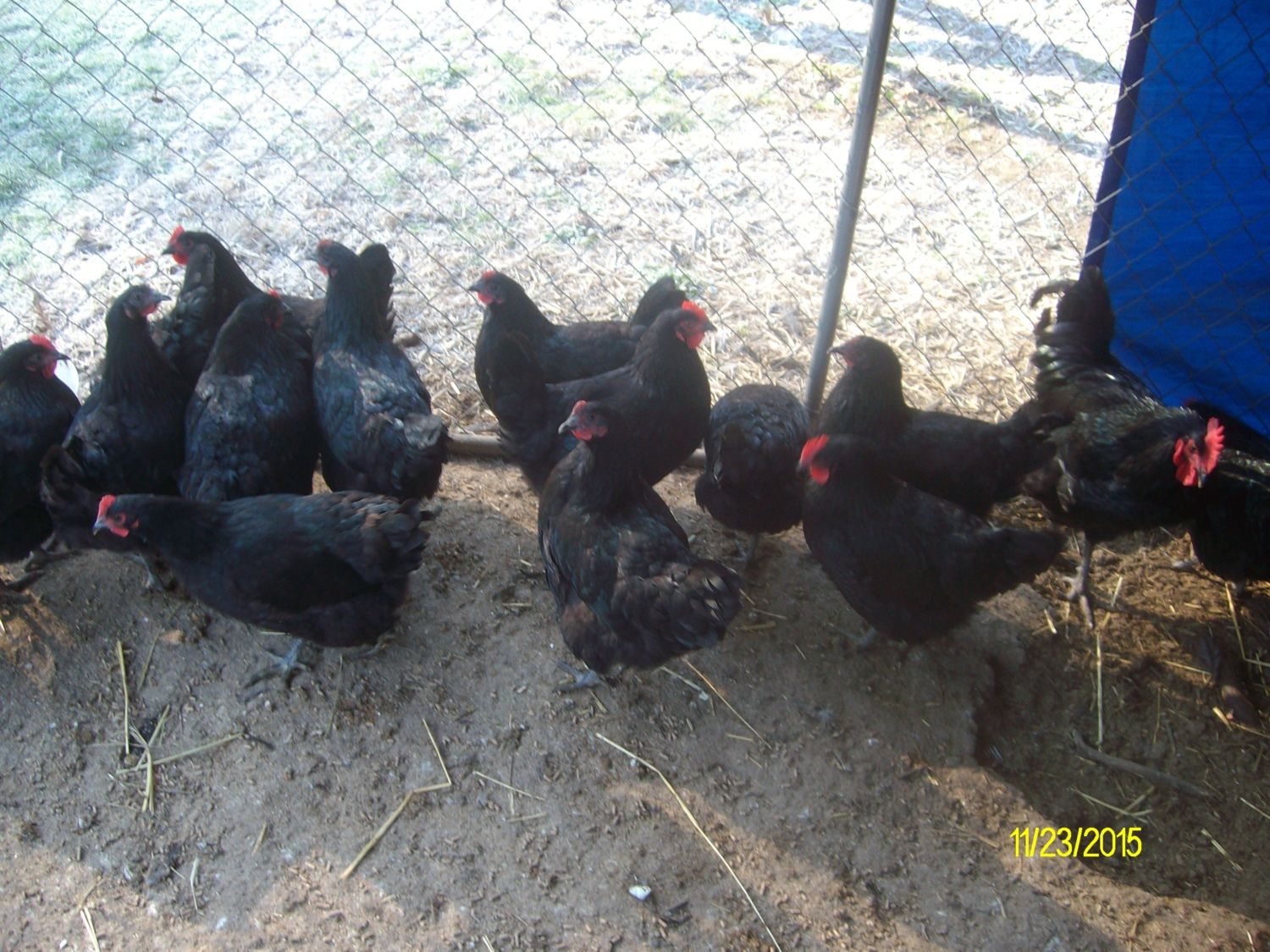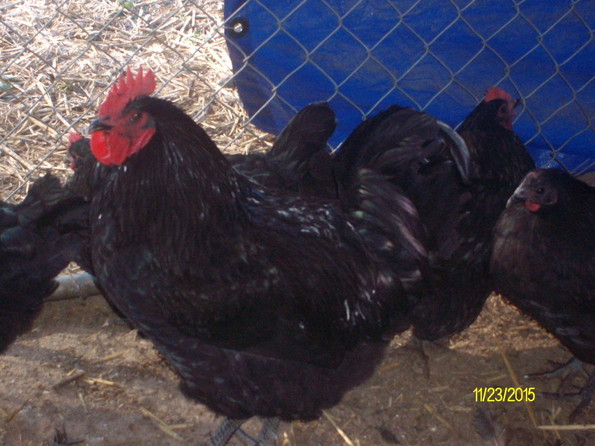 My Black Jersey Giants are going on 6 months old the 15th of November & my roosters are starting to cover my hens .Cackle got my order off & i w as supposed to get were 25 Hens & just 3 Roosters & they sent me 7 rooster & only 18 pullets . They are already quite larger than my brother's Road Island Reds & his is Cock almost 16I am gonna keep at least 2 of the roosters & i have already picked them out & i am keeping 1 of them my cousin is wanting one to put with his Black Jersey Giants pullets all of his roosters died or were killed by a stupid half wild stray cat it got 7 of our mixed breeds & TRUST ME IT WON"T KILL NO MORE OF ANY ONES my boxer got loose & tore it into poetic justice i guess it did the same to our babies . I am wondering when my pullets will begin to lay for me ya recon fellas ? I am gonna put up some pictures of my flock when i find the time i really do love my Black Jersey Giants