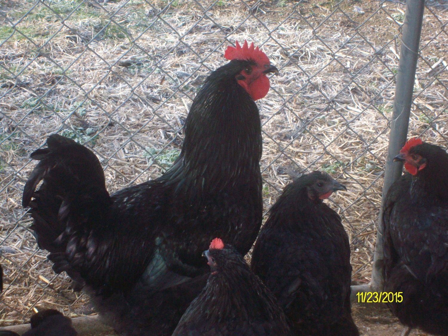 Falla BYC friends here are a few pics of my Black Jersey Giant Flock .They are 6 months old now My Rooster was named Ole BIGFOOT lol