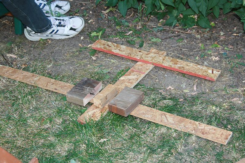 I started with the base...four 2x6 redwood deck boards. Remnants of our deck building endeavor 5 years ago. I just KNEW they would come in handy some day! haha I attached a 'frame' of 2x2s to that so I could have a drop plyboard floor. I am going to eventually (next payday) add a piece of linoleum to the floor to make clean up easy and protect the plyboard.