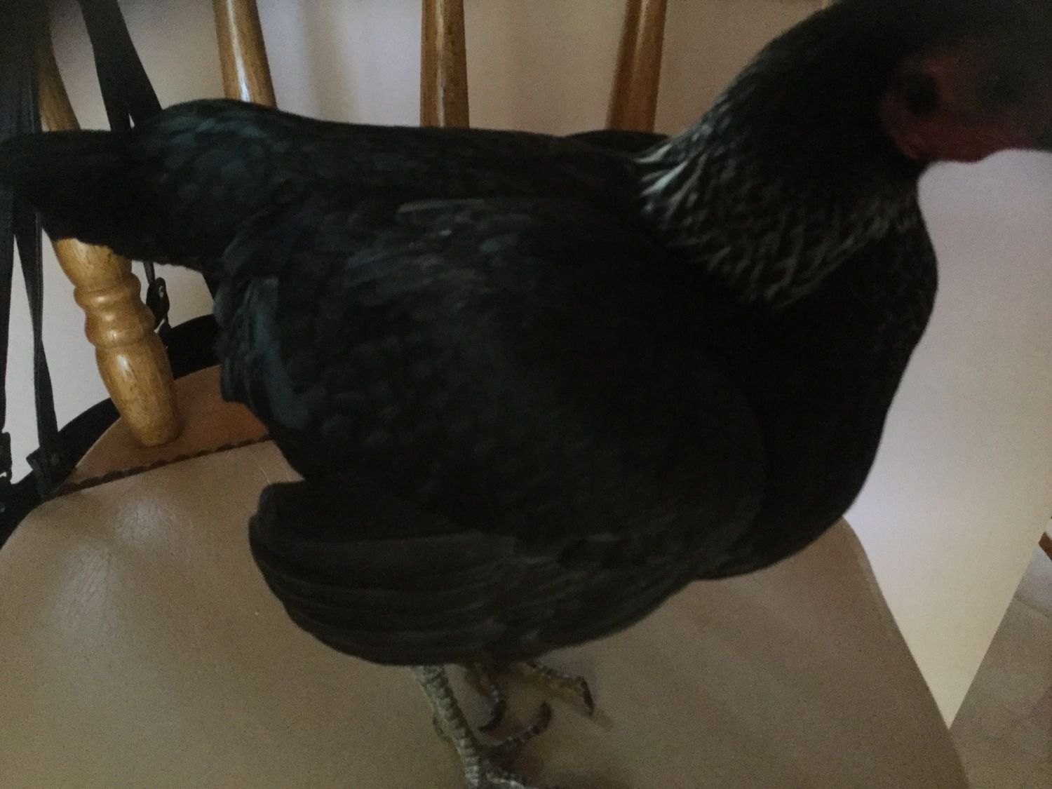 You can try to place the wing in it's natural position and wrap it against her body with vet wrap or gauze. It will take some time to heal, so keep her separated with her own food/water.