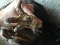 He is one year old, he does have a defect, he was born without a toe, I’ve experienced to much I’ll in my chickens and am very happy to hear that Bumblefoot is treatable, I put pictures of his foot