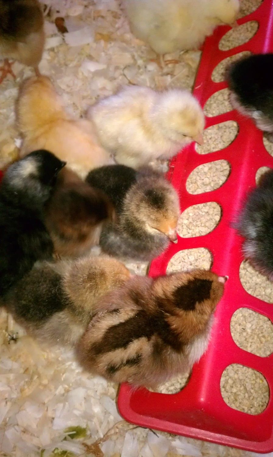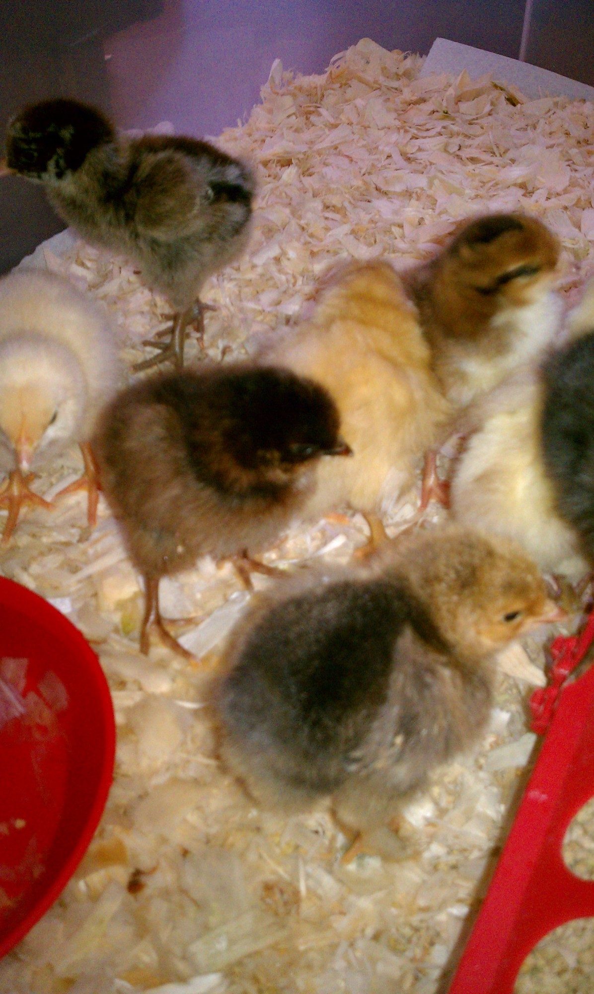. Anyhooz, they were all alive and well, no DOA's thank goodness. I had ordered 12, and they added a partridge rock as a packing peanut. That was my "Free Rare Chick"
