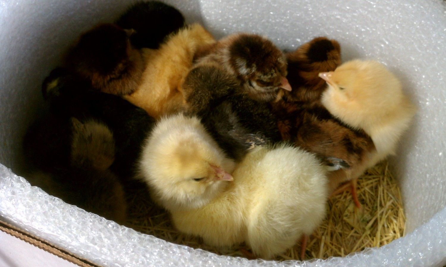 The post office called me at 9:30 and I zipped on over to pick them up. They said they attempted delivery at 8:30 but I never heard a doorbell. I thought that was a bit strange as I've never heard of chicks being delivered to the doorstep