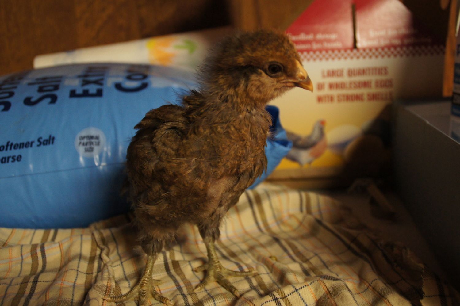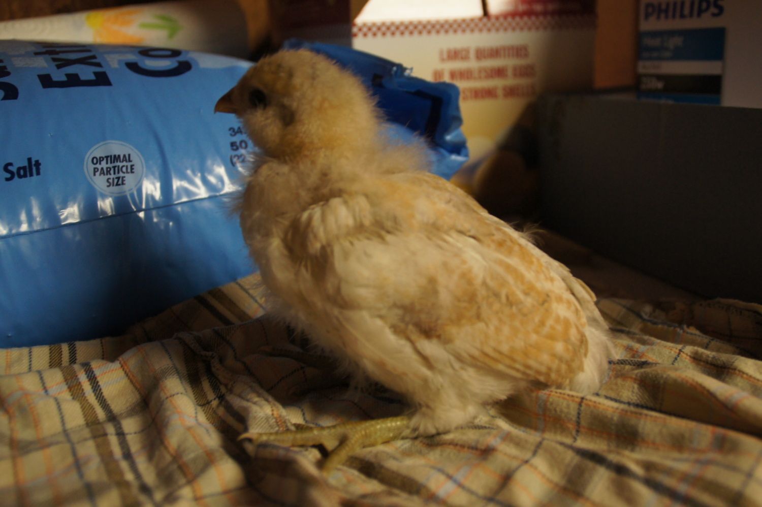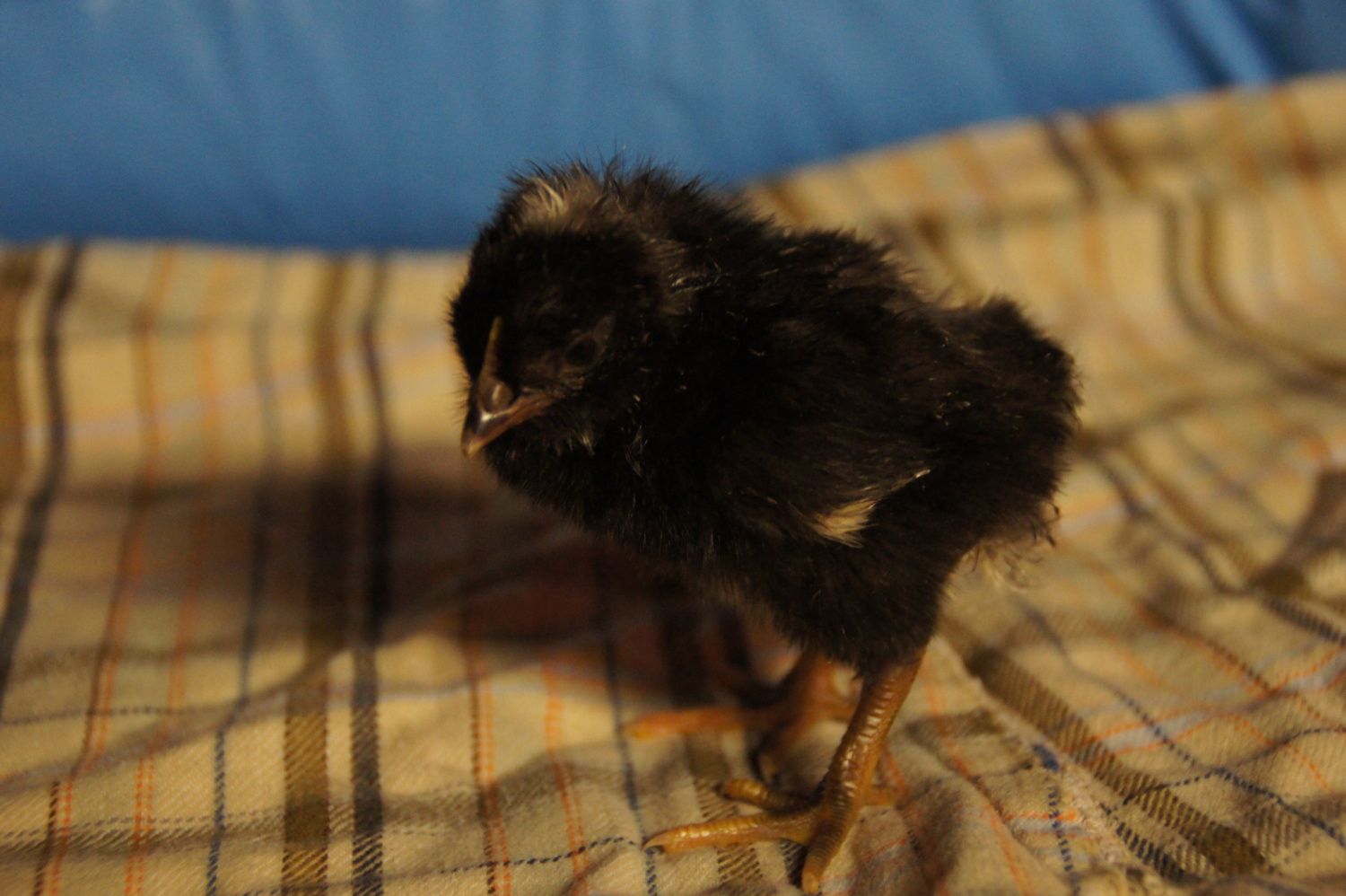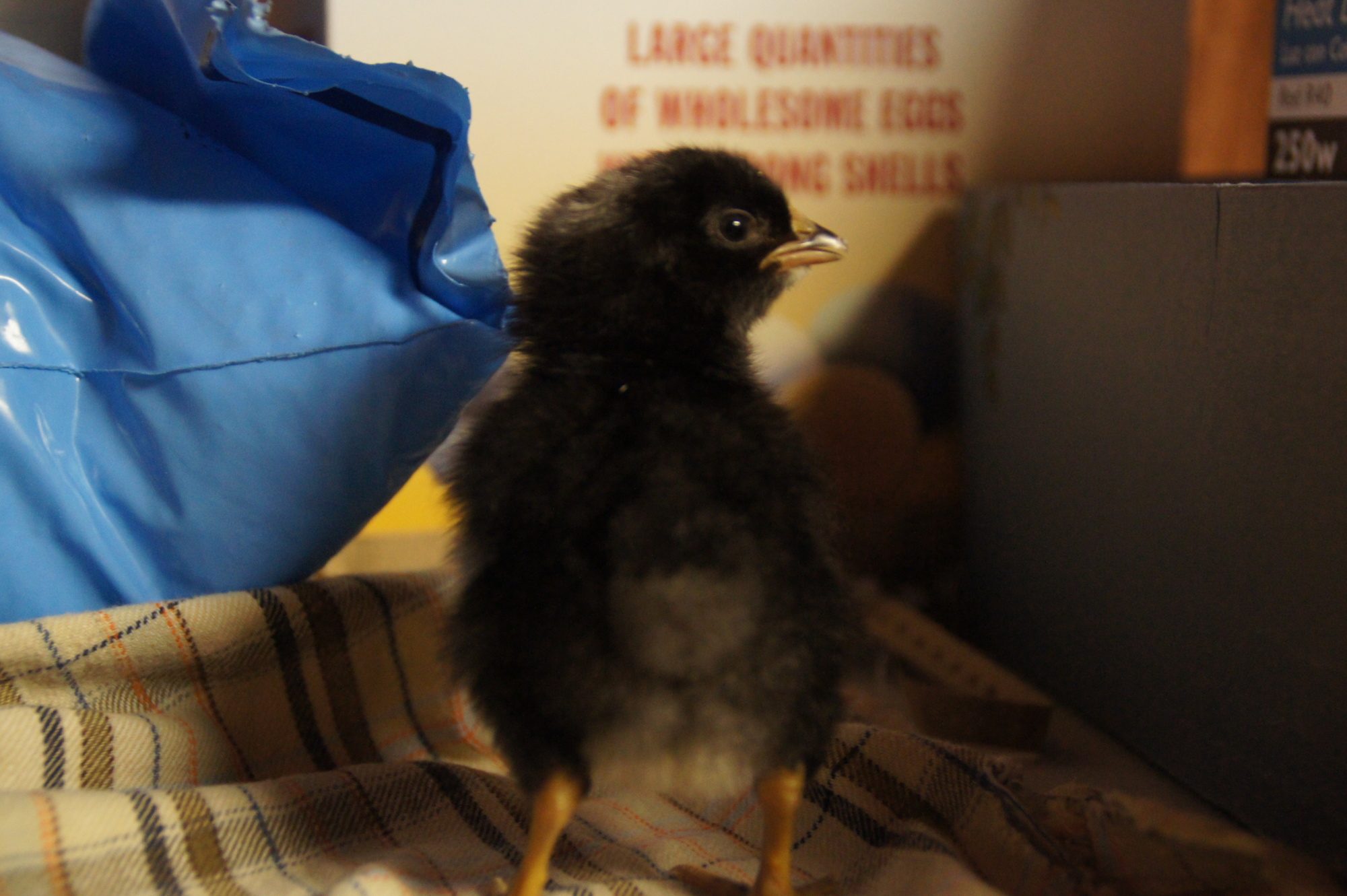 The first guy hatched Monday the rest hatched Tuesday. The black ones are barred rock (father) x black sex link. All three have white spots on their heads think that could mean roo? The white chick is a silkie. Her toes didn't straighten out so we had to help her with that, but flatting them and attaching them to cardboard. She gets along better on the cardboard, then with her own the feet. The poor baby coud barely walk.