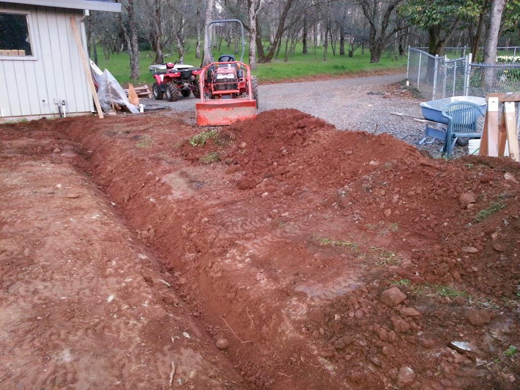 I didn't want to rent a trencher for a 40 foot run, so between the tractor and elbow grease I dug a trench to run a power line from the garage.