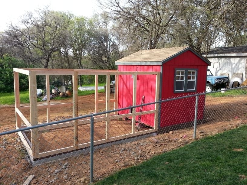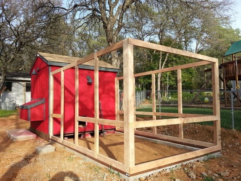 After painting the coop I built the frame for the run. It will be surrounded in 1/2" hardware cloth. I'm doing 24" hardware cloth on the bottom of the sides and 48" cloth on the upper part of the sides.
