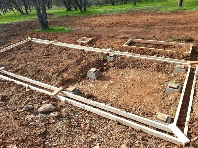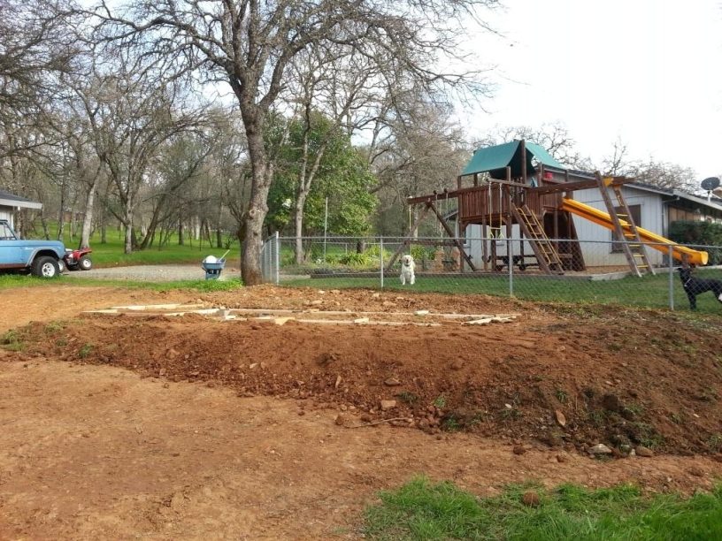 In September or October I bought most of the material for the coop. I stacked it in the garage and waited for the weather to get nice enough to build. The weather started to get nice in January, so I got started. I set the concrete piers for the coop, and built forms for the concrete.
