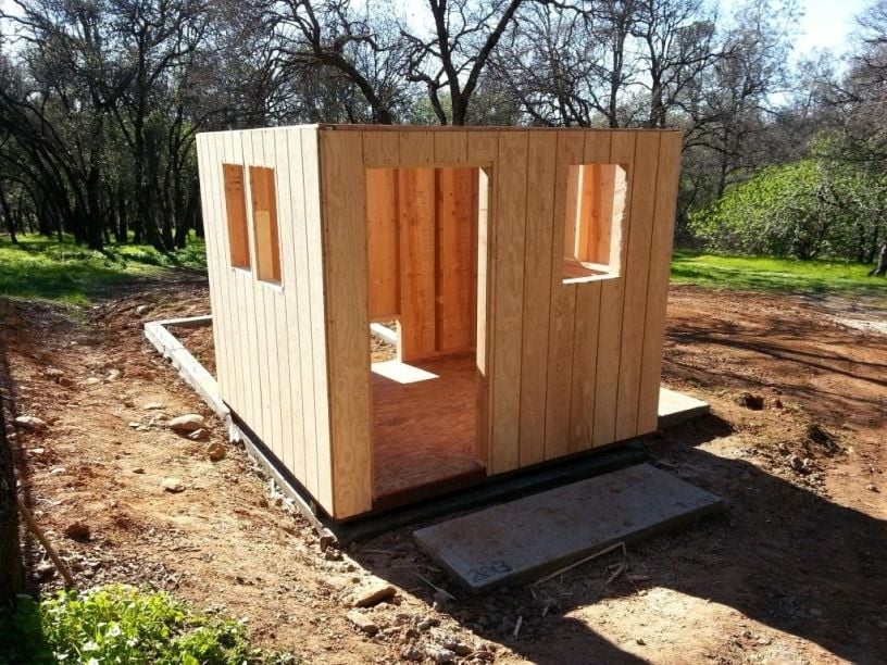 The following weekend I built the rafters and sheeted the roof. The rain was on its way, and I was racing the clouds.