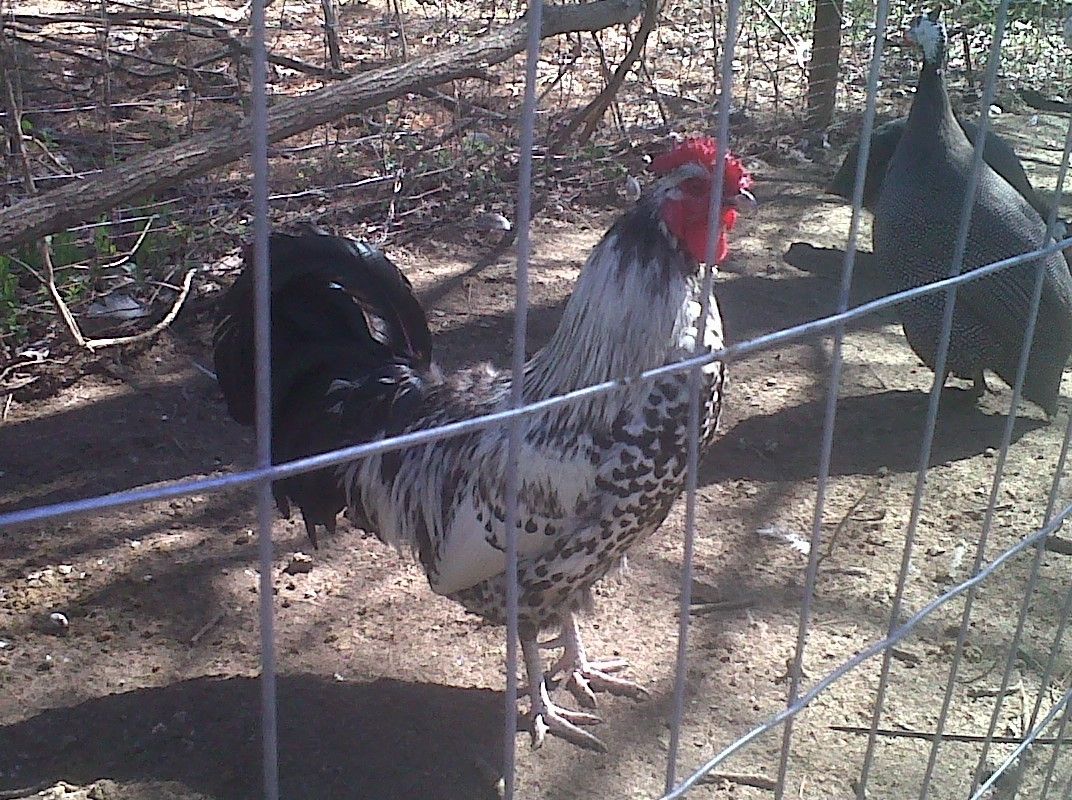 This is Frankie. We have a group of silver spangled hamburg bantams, among other things. We think we had a black giant that went rogue and got into some of the other pens and this is the result. We noticed that this guy was getting bigger than his brothers and sisters fairly quickly, but didnt think much of it. Now he is just as big as a standard bird.