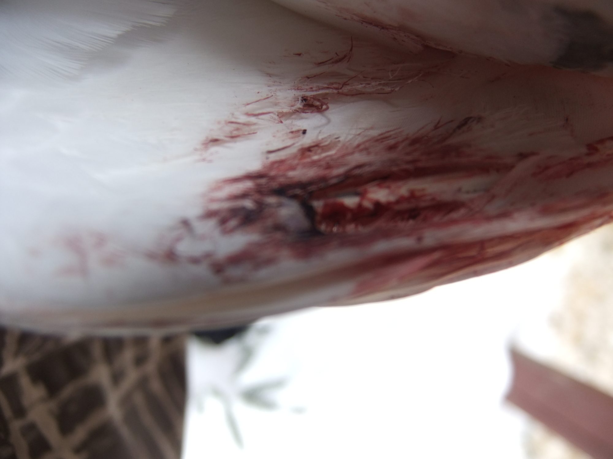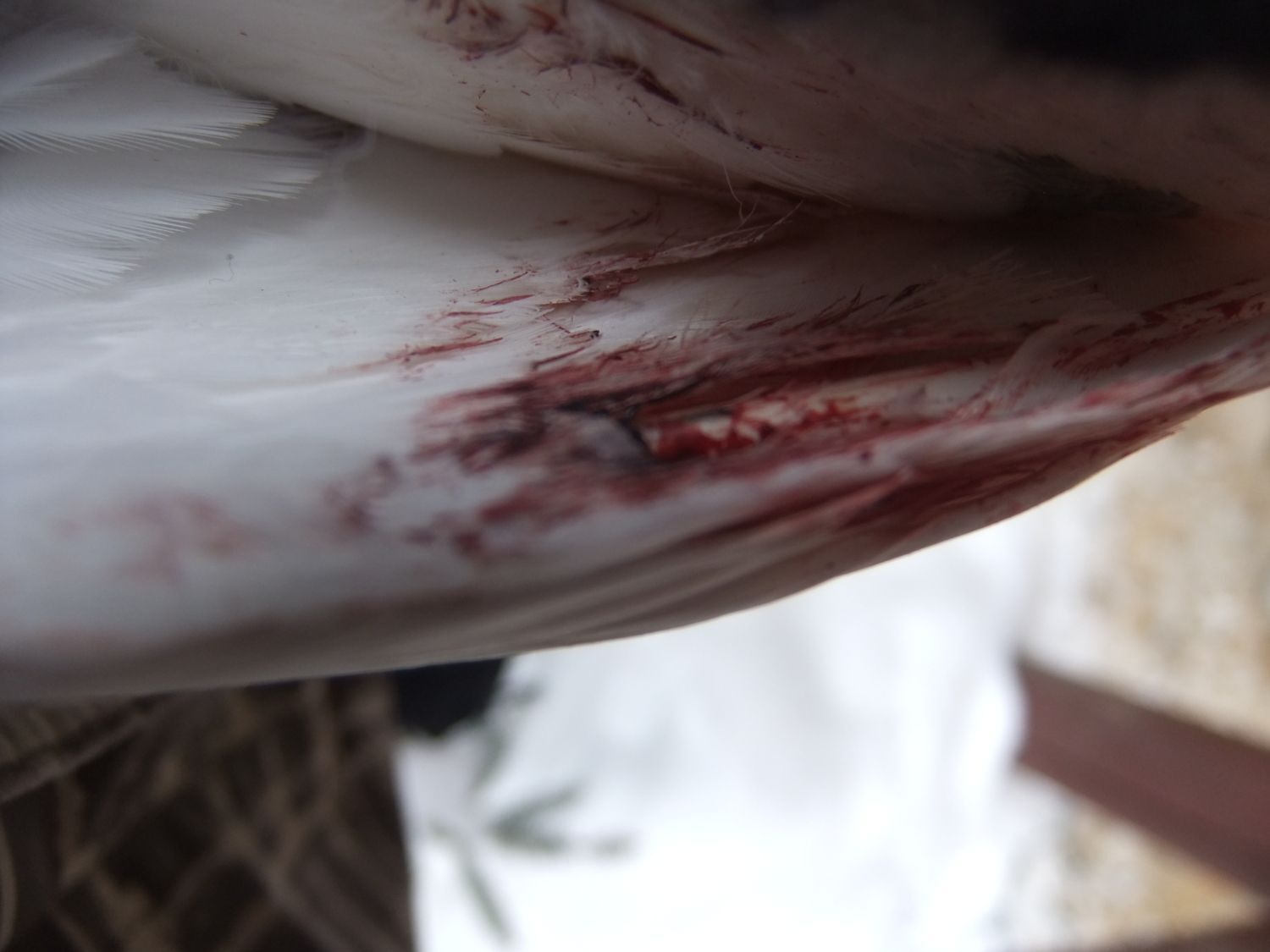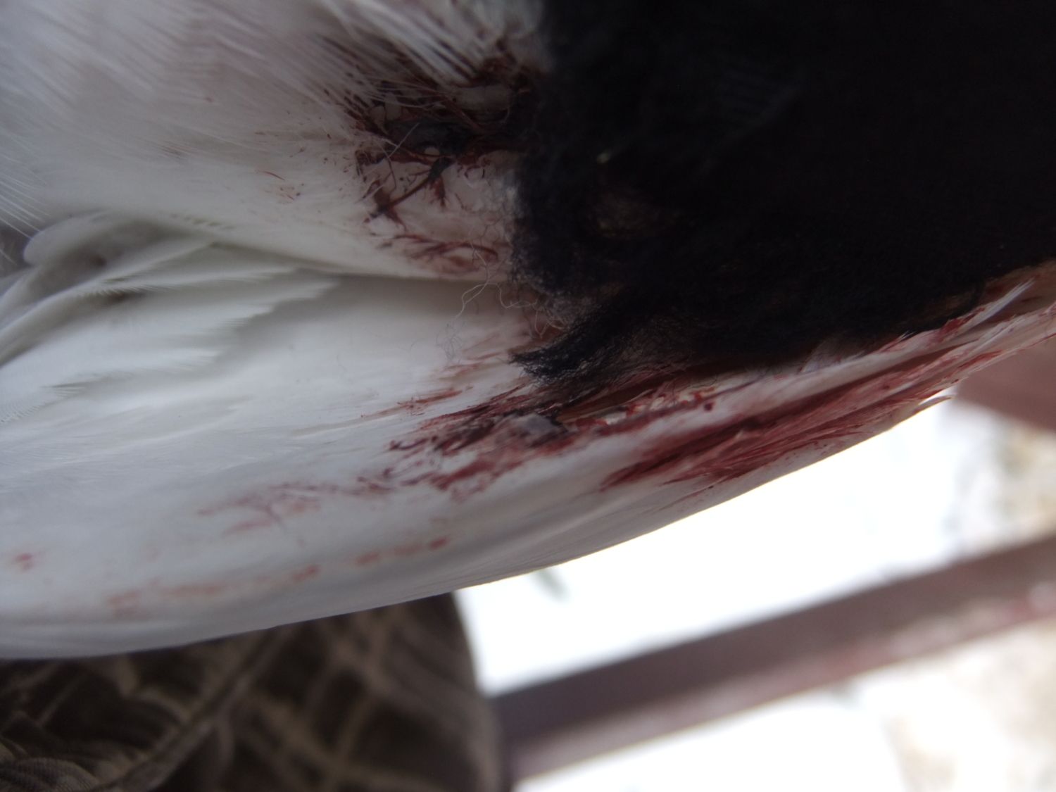 My dove has blood under his wing! What should i do, I am going to go outside to catch him soon. But what will i need to do?