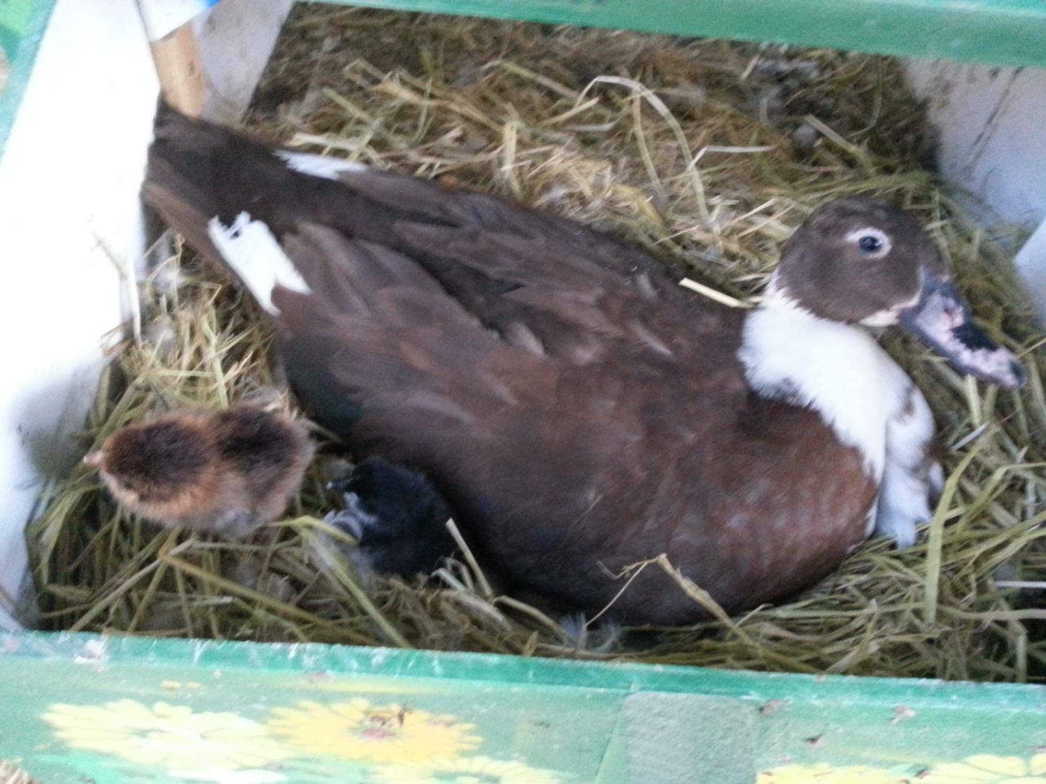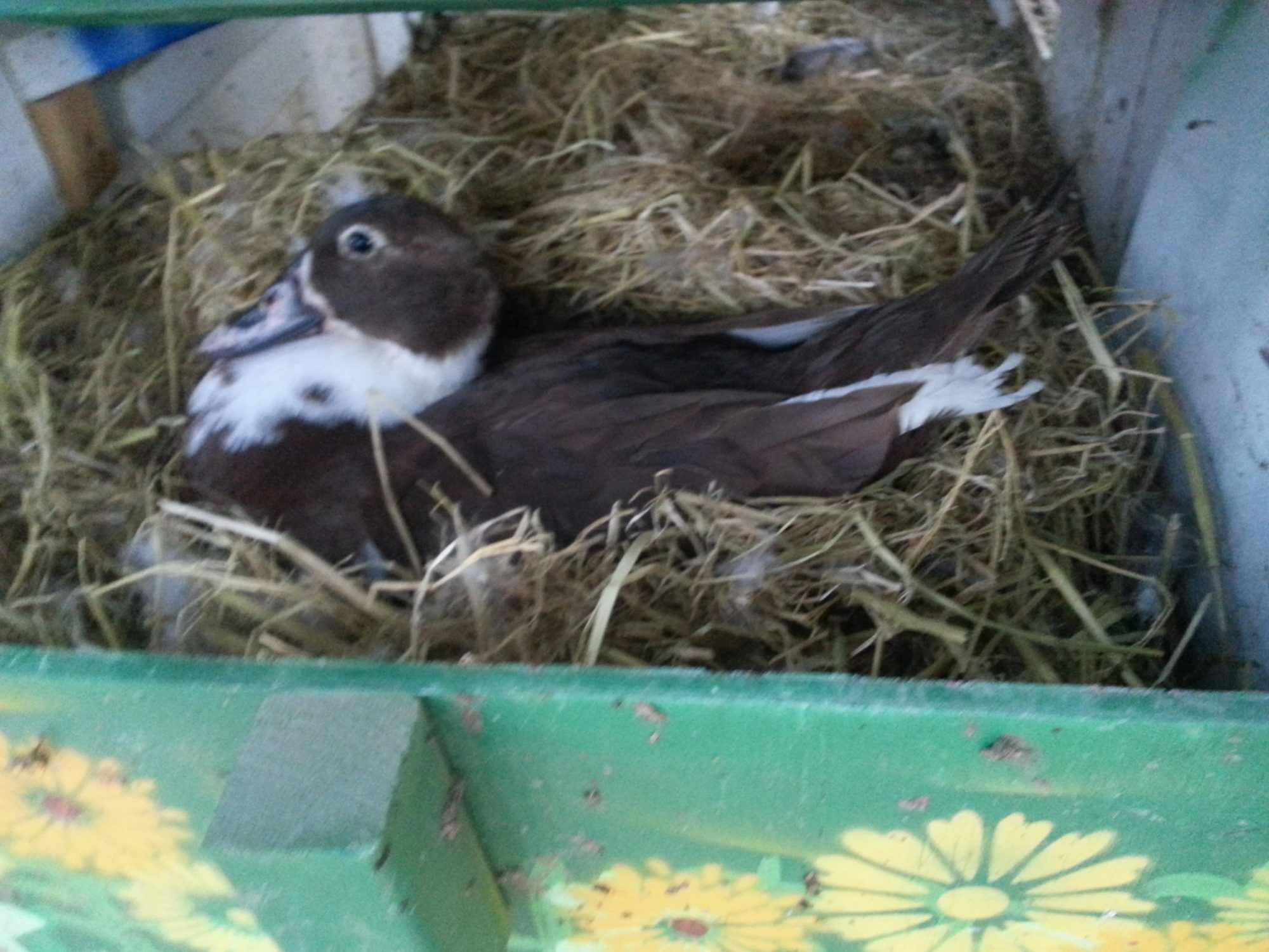About three weeks ago , my son went to collect the eggs and came in with a basket full of eggs complaining that the plymouth rock was on them and wouldn't get up. And i said ooooh no, go put them back! So he did. The next day i asked him to see if she was still sitting, and he came back and said the duck is sitting on them now.