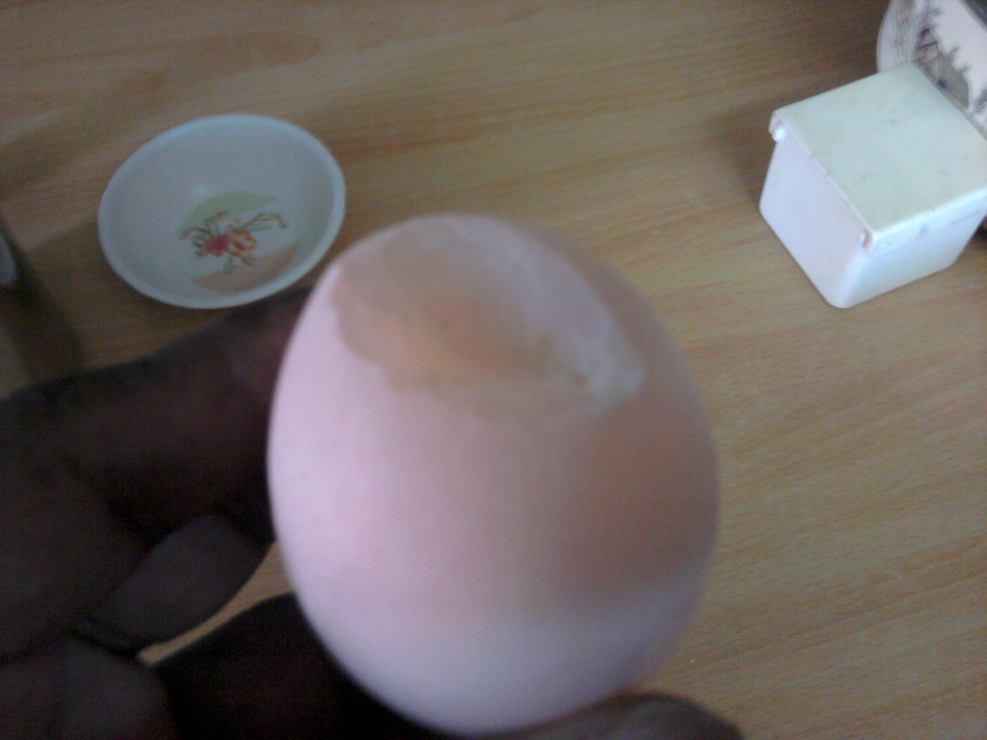 The first egg was similar except the stretched out shell was much softer like a skin and I was able to fold the stretched part without cracking it.