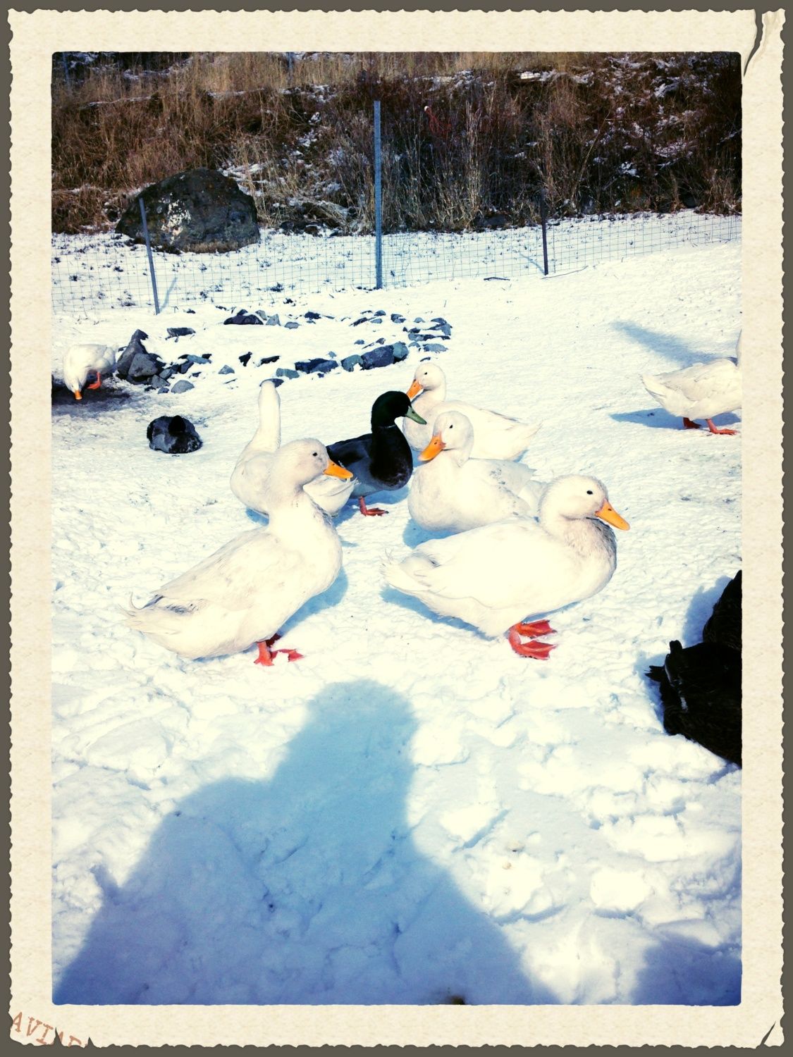 here's my duckies!! They are staying in my back yard but they ate all the grass last summer now it looks horrible :O but I'm moving them to there permanent home on the pond come spring!