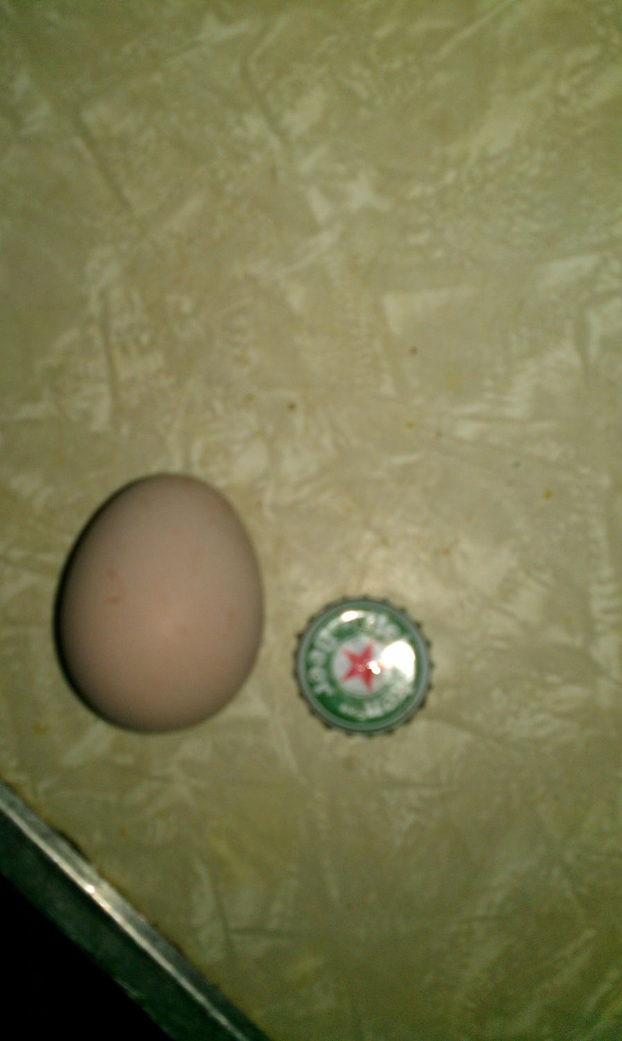 this is her first egg, she started laying monday and for the past 2 days she is laying 2 eggs at a time...... I wonder what my nosey neighbor would say about that.