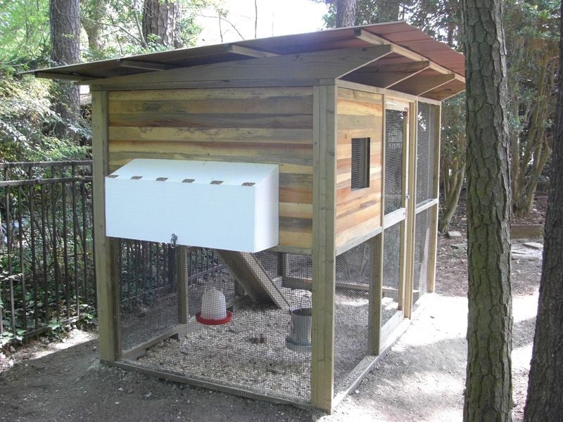 The wood covering the exterior of the hen-house is 3/4 Brazilian Koa hardwood. It was purchased from lumber liquidators and was leftover from a flooring project in our home.