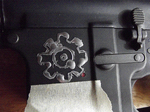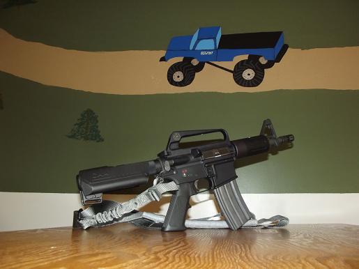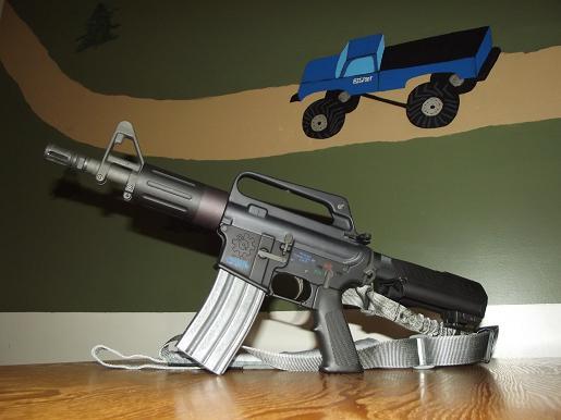 After that, I put a CAA Stock Saddle on it (there's a pic on a previous page). The saddle is made to go over a skeleton stock on an M4, but I wrapped the buffer tube with nylon webbing and then zip-tied the saddle over it. I like the looks of it, and it'll give a more consistent cheek weld.