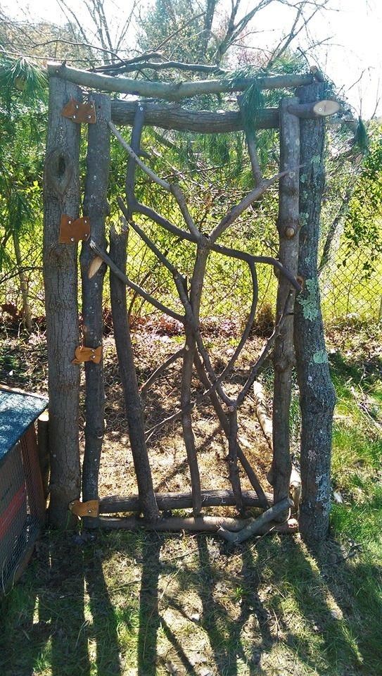 I finally got the time and nice enough weather to make the door for my girls coop run! Here are the coops and the new door! I built it myself to look like a Nature door, it matches the Magic Garden I built last year for my Vegetables!