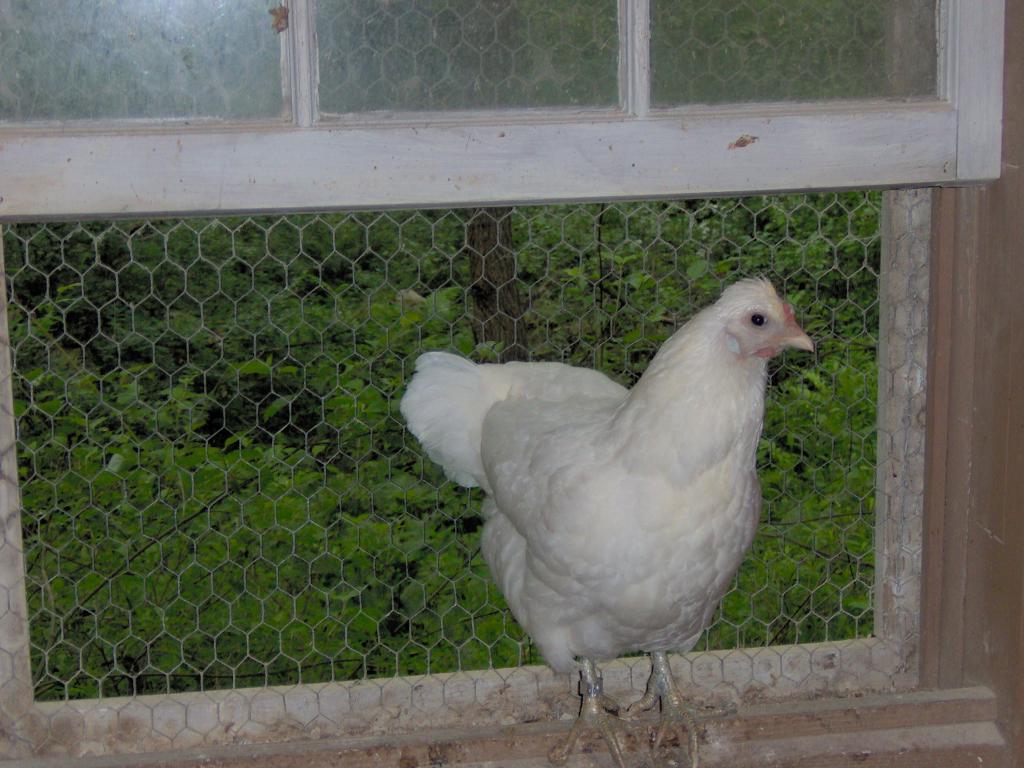 Imelda, being the broody silkie that she was, was determine to hatch out some eggs no matter the time of year. We gave her some eggs end of december/ january time and she managed to hatch out 1 chick- Arctic. Besides being born on the coldest week of winter, also happened to be a somewhat nasty chicken, don't know how that happened with sweet Gizmo as the father. (and I think the mother was a black jersey giant, but not sure... but mother was definitely not white, didn't have any white chickens at the time) But The nice thing was that Arctic had the softest feathers!!