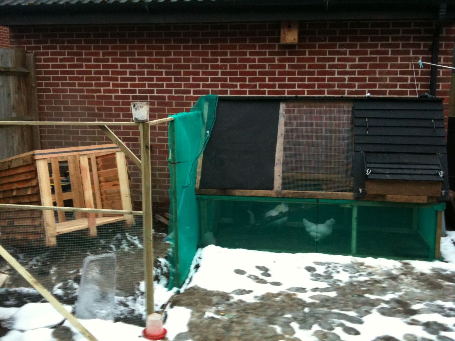 As you can see iv moved my old coop up off the ground to make some more room for my 4 hens, still need to add wire instead of the netting
