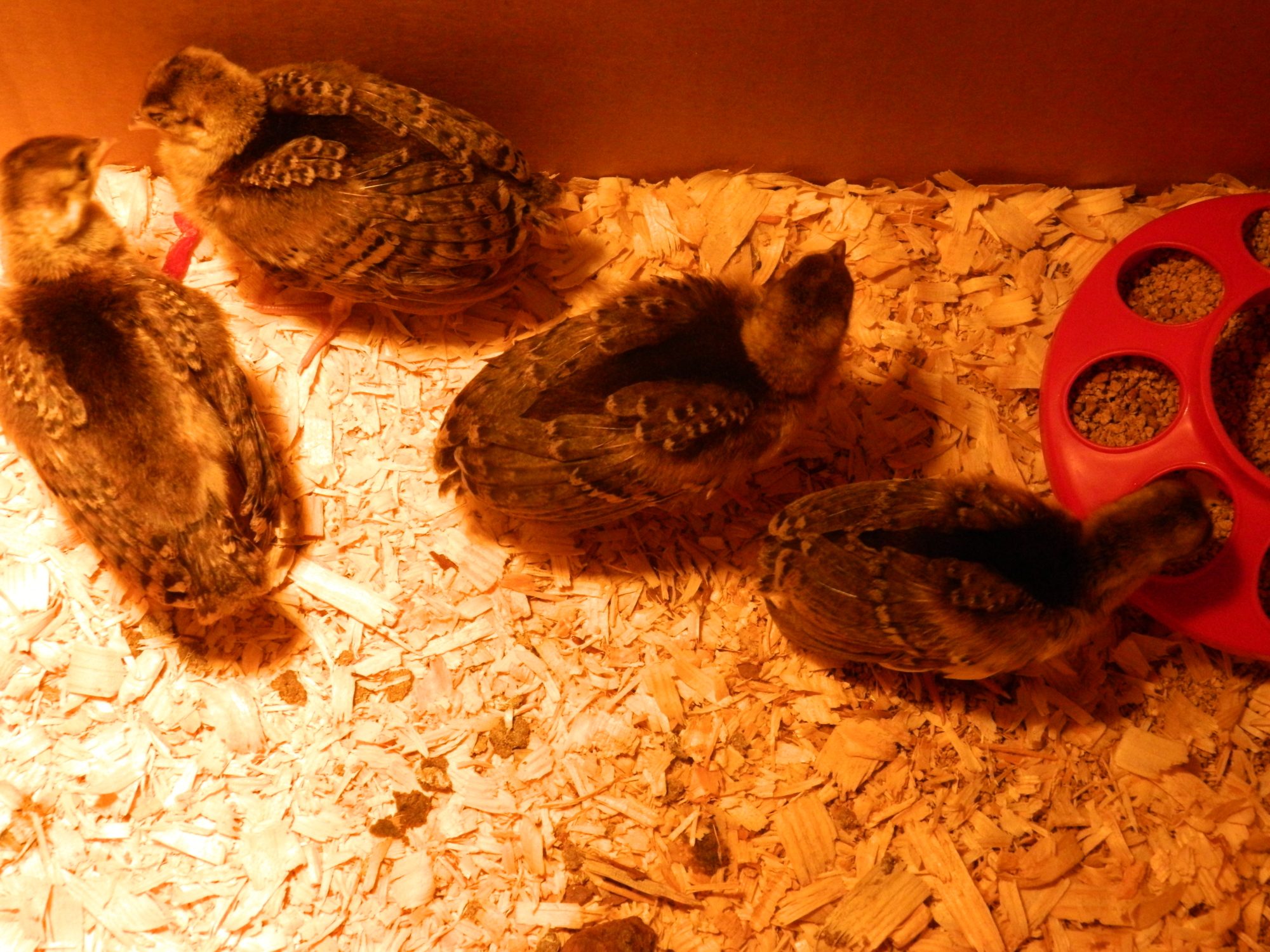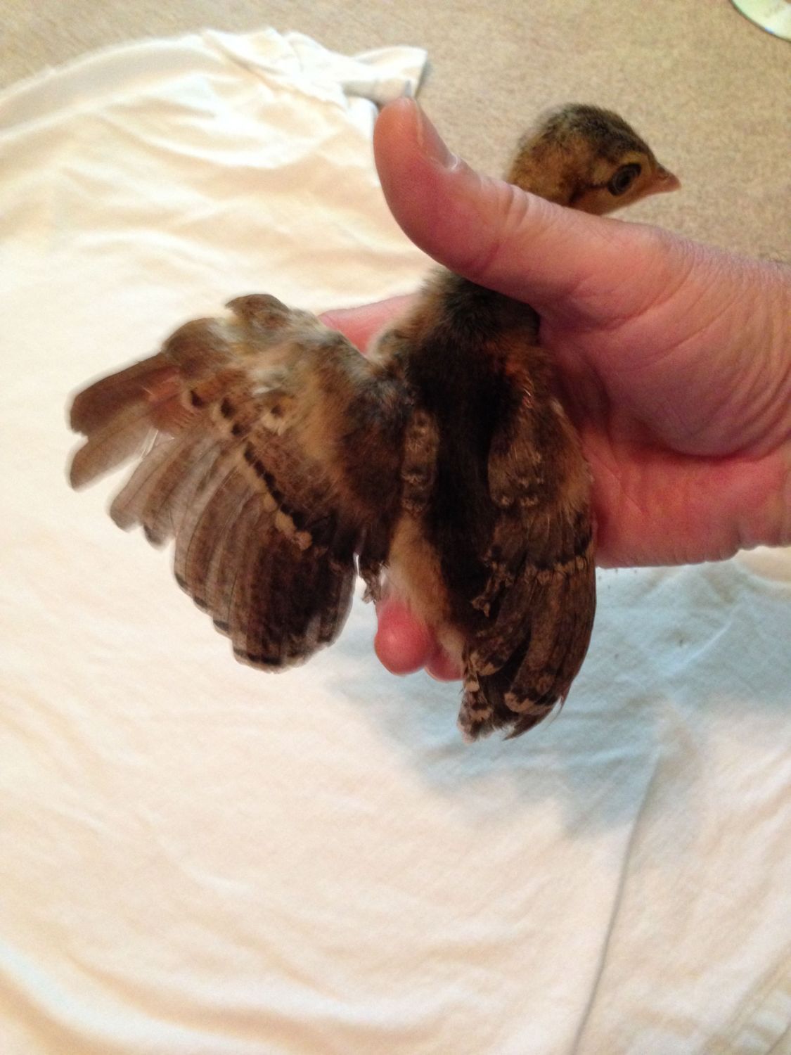I just drove down to Memphis today to pick up my new recruits these are about 2 weeks old now and I was wondering if ZAZ could help me decide what sex these peachicks are . From Her pictures of a male and female peachick I would guess 3 males and one female of the new 4...
