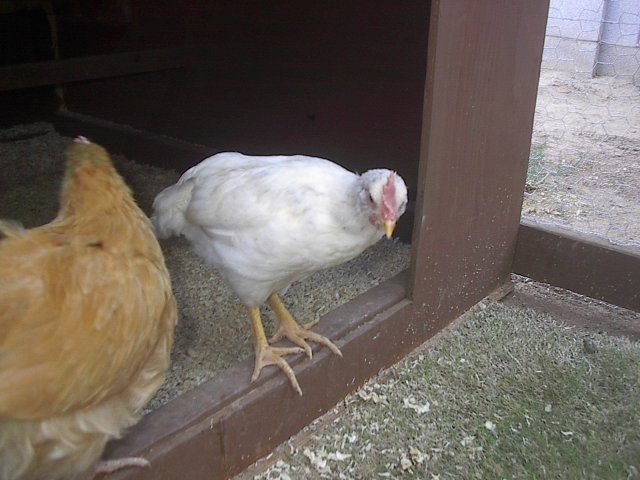 Roxie is minding her own business, pecking at crumbs, doing what chickens do....when all of a sudden... out of nowhere, she catches a glimpse of something...