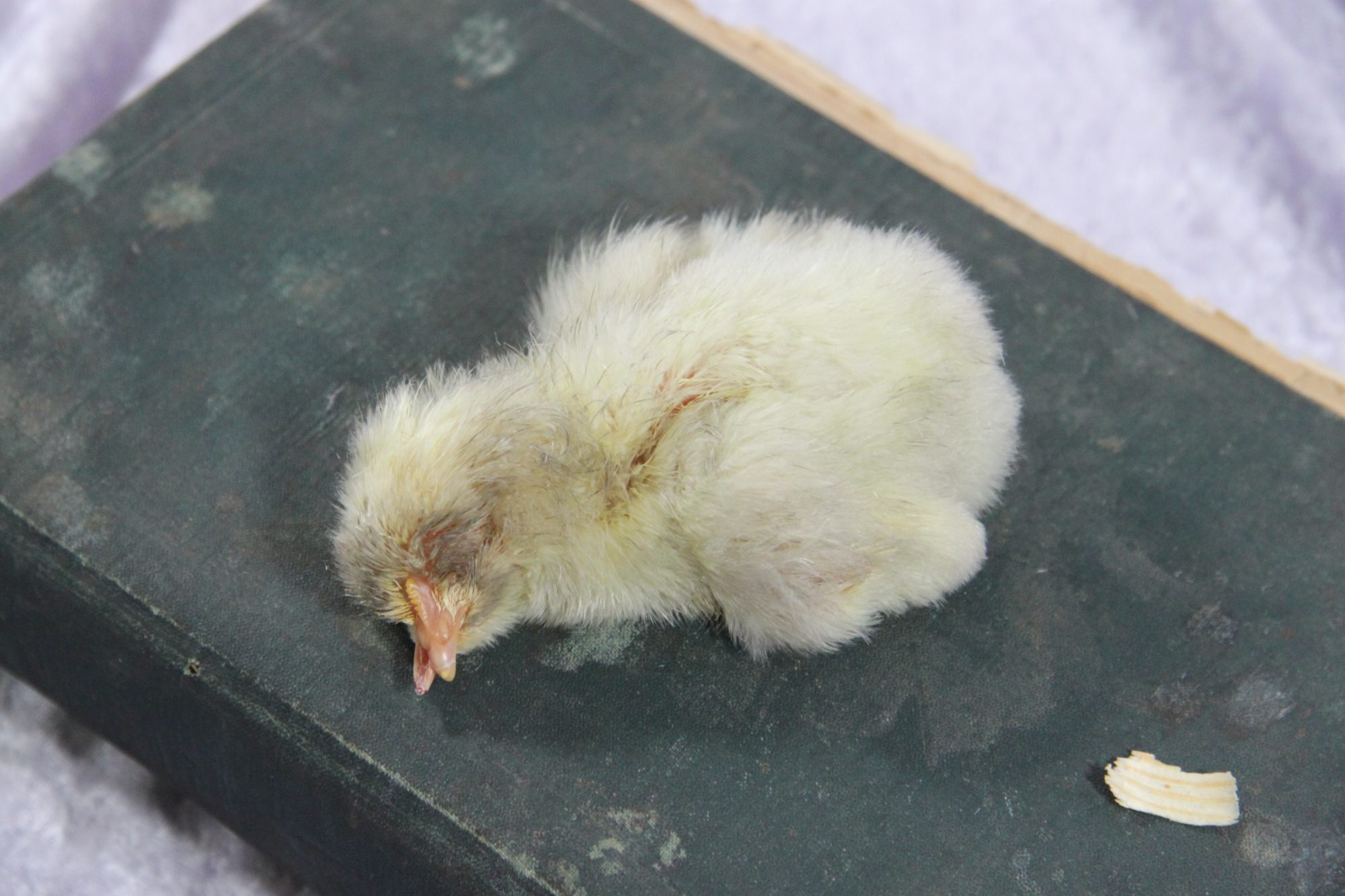 One of my home-grown eggs was born deformed, a first for me. The chick has only one eye and a severely crossed beak--honestly, I don't know how it was even able to hatch. I'm waiting to see if it can eat on its own before I decide whether or not to put it down. Besides the deformity, it's acting like a perfectly normal chick of this age, so we will see. If it does thrive, I will name it Sloth after the character from Goonies.