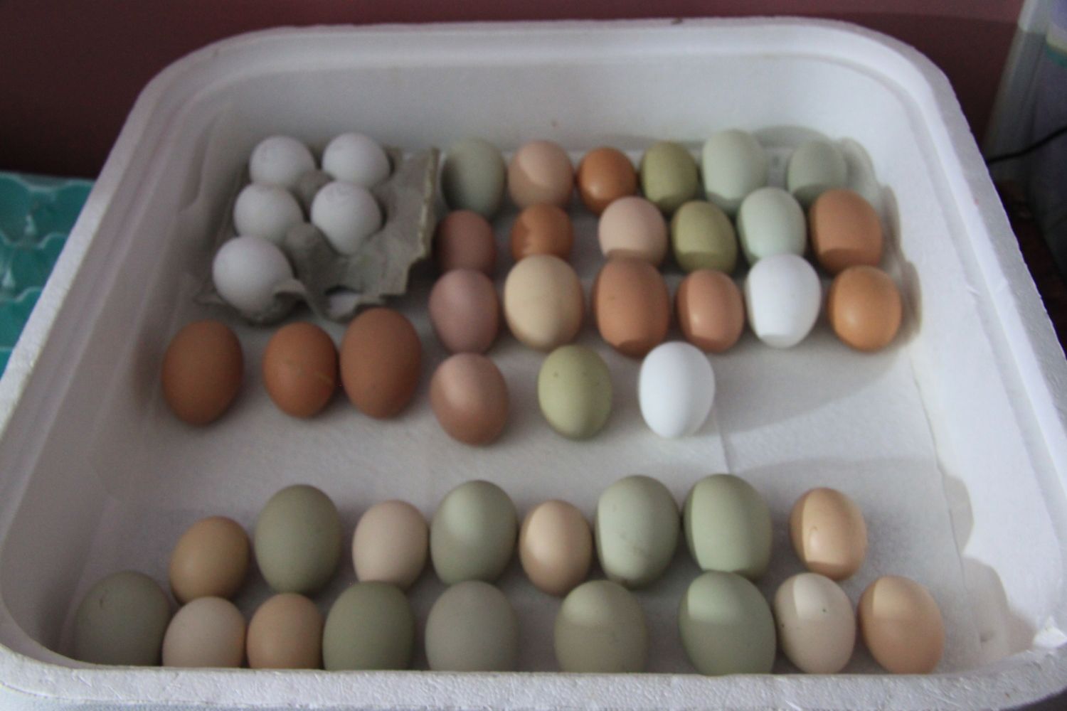 All four of the australorp x EE eggs look great. In total I had 8 Legbars and 27 EEs. I tossed 6 EE eggs because they were clear and I think two more are quitters but will check again in a couple of days. None of the Rhodebar x EE eggs were looking at all viable, but that is OK because I don't have room for as many chicks as could potentially hatch. ;)