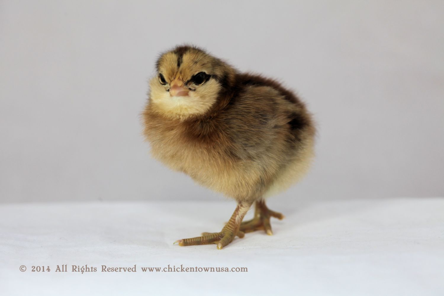 The mother is a red Easter Egger--possibly an EE/Production red mix. The father is anyone's guess. That makes this chick--and all of those that hatch from the green eggs in this batch--3rd generation!