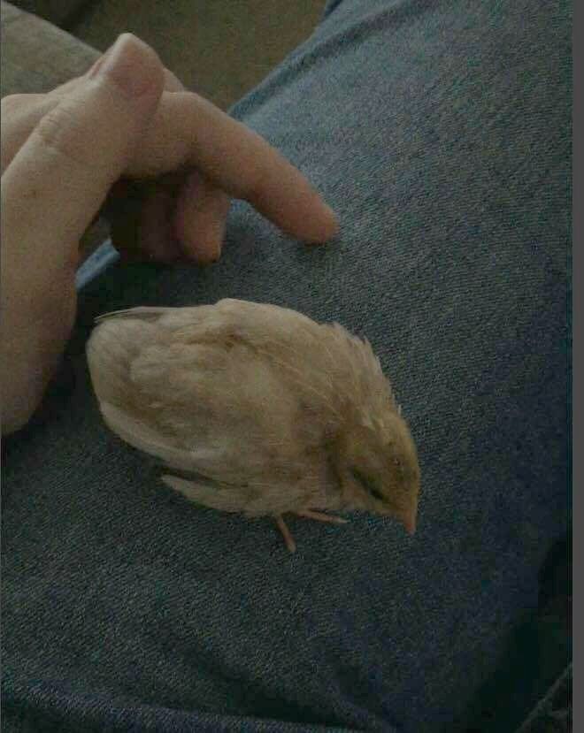 M.A is the most adorable and noisy chick i've met lol. He's currently sleeping on my belly under my hand. He seems to love that secure feeling, and it shuts him up for a bit haha!