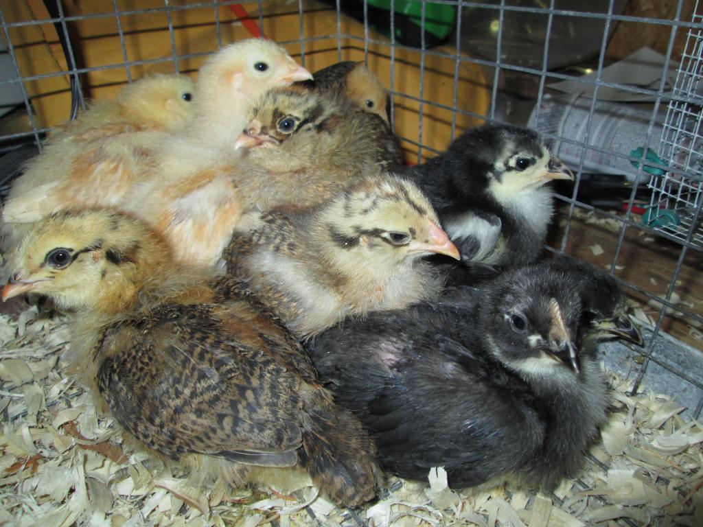 Anyways here's some pics of our babies from the first day we got them to today. The hatchery threw in 8 extras (thinking RIRs) which I've given to a friend.
