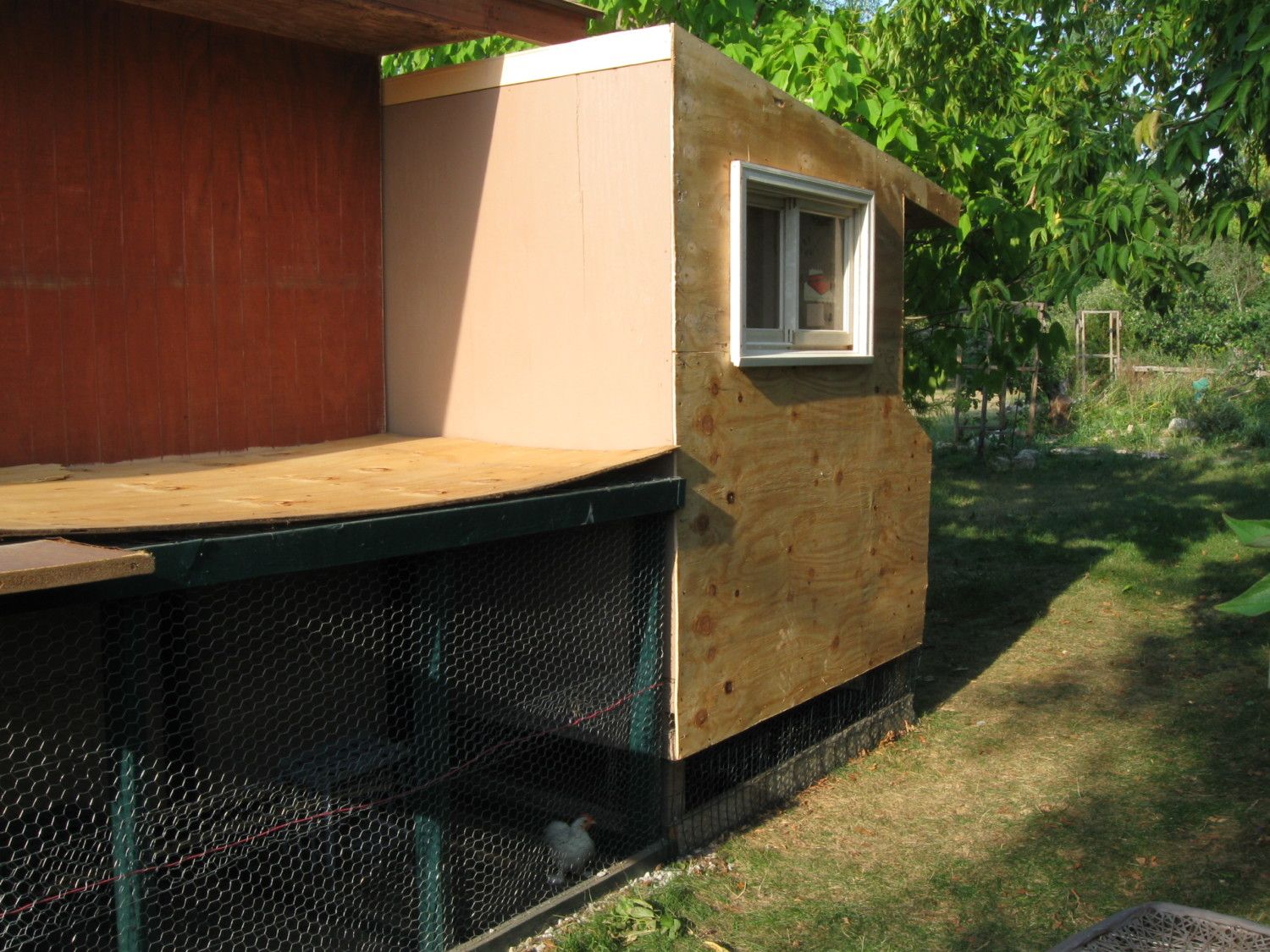 I will also (eventually) put a roof on the run. But this window is the one with the gap at the top (faces south) and I was thinking vent? Or I should fill it. I do have two short gutter pieces that I was going to vent out at the peak (both north and south sides at the peak) with a 45 degree bent piece that will point down. . . to keep rain out and allow hot air out. . . but I will also put the screen over those too?