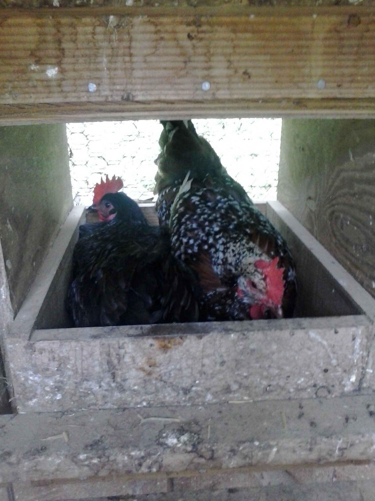 I still need to come up with something, probably another smaller poop board roost, to cover my nest boxes with. I was hoping they'd fit underneath the other roosts we made, but are too wide, with the center brace underneath the poop boards.