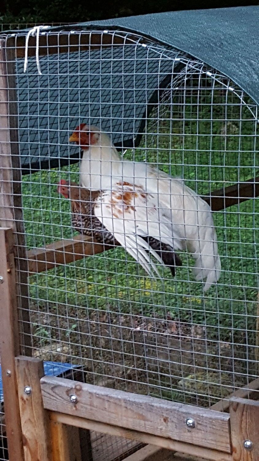 So Sunday we tacked wire up over the rafter to keep the chickens out. That worked well. Monday we did the poop board roost on the other side.
