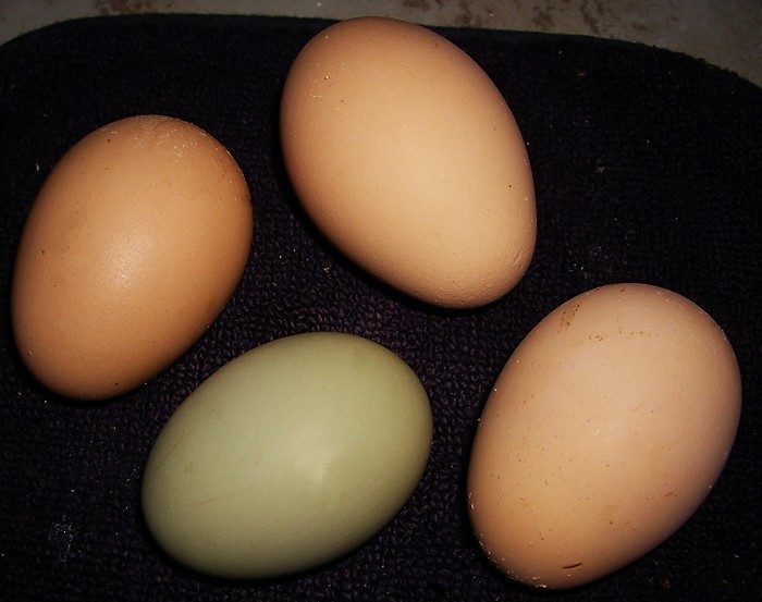 The flash made these a little lighter, our green eggs are almost olive. Veeeeeery pretty :-)