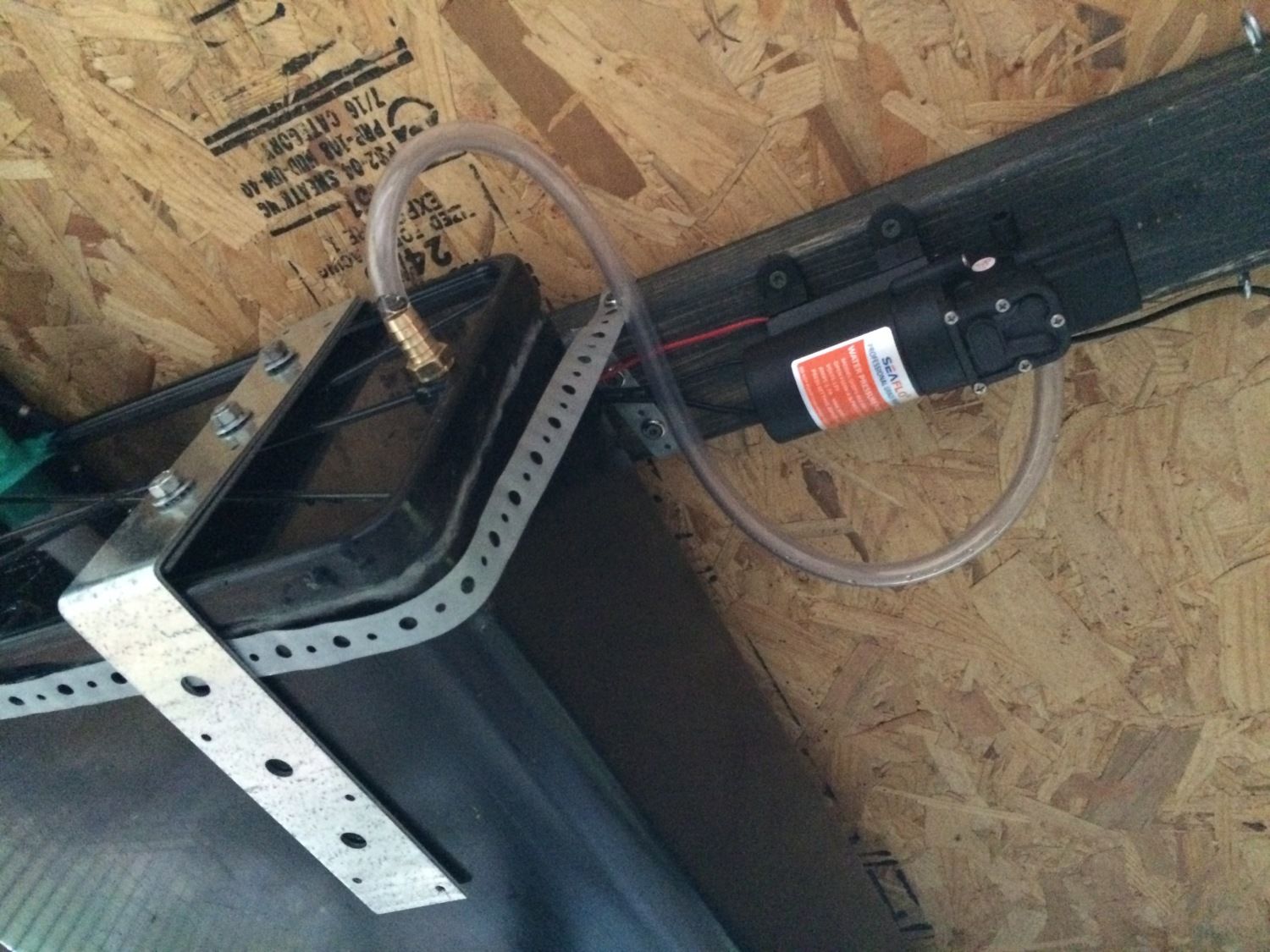 This is a shot of the 12v pump with the vinyl tube that feeds back into the tank.