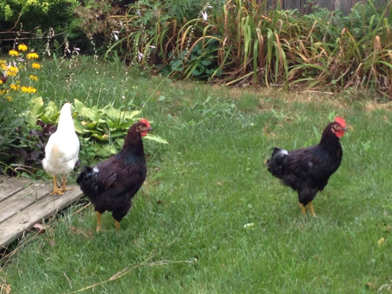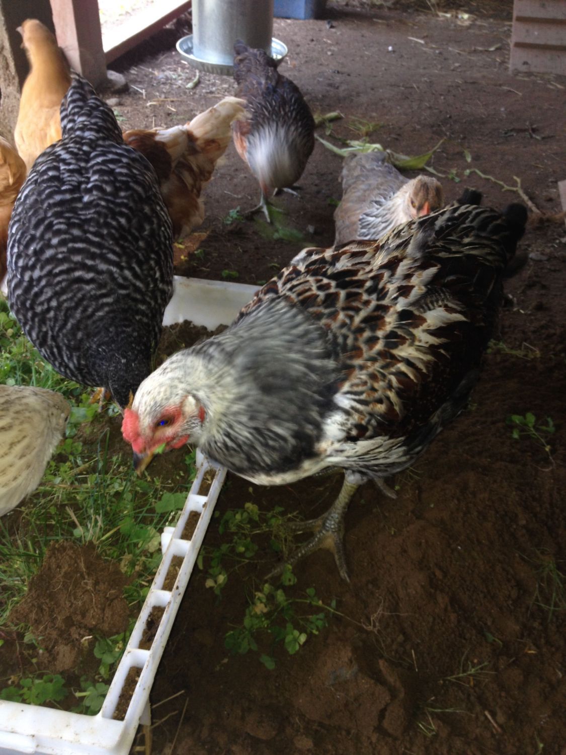I'm just sad to see them go. They really are super friendly, but our neighbors would be less than thrilled if we kept them. We also have a few red sex links, a couple of buffs, and a silver laced wyandotte. The buffs are really lovable too! To add to my luck, I'm also thinking my silver laced wyandotte is a roo too. "She's" only 8 weeks and has long waddles and the start of a prominant comb!