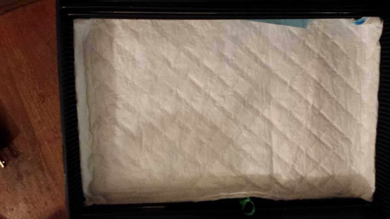 -Cut the puppy pad back a bit on the edges so that the humidity does not get trapped underneath and air can circulate better.