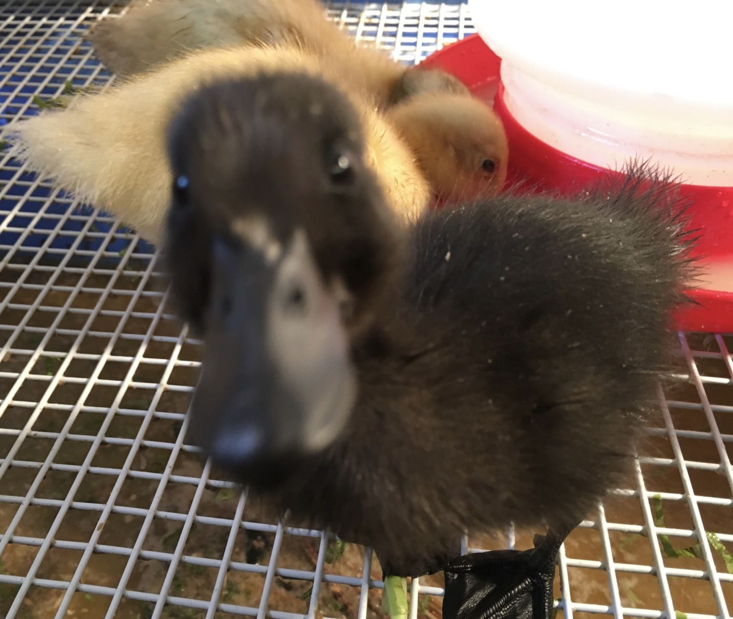 Last night, my husband and I gave our ducklings their first bath! I think it might have been the cutest thing I've ever seen! After they were all done swimming and splashing and generally making a huge mess, we removed their paint tray (read about using a paint tray for a mini duckling pool here on BYC - thanks!!) and also gave them some fresh water in their water dish. One of the Cayugas immediately tried to swim in that too! Poor little thing, there's only about an inch of water in that dish lol.