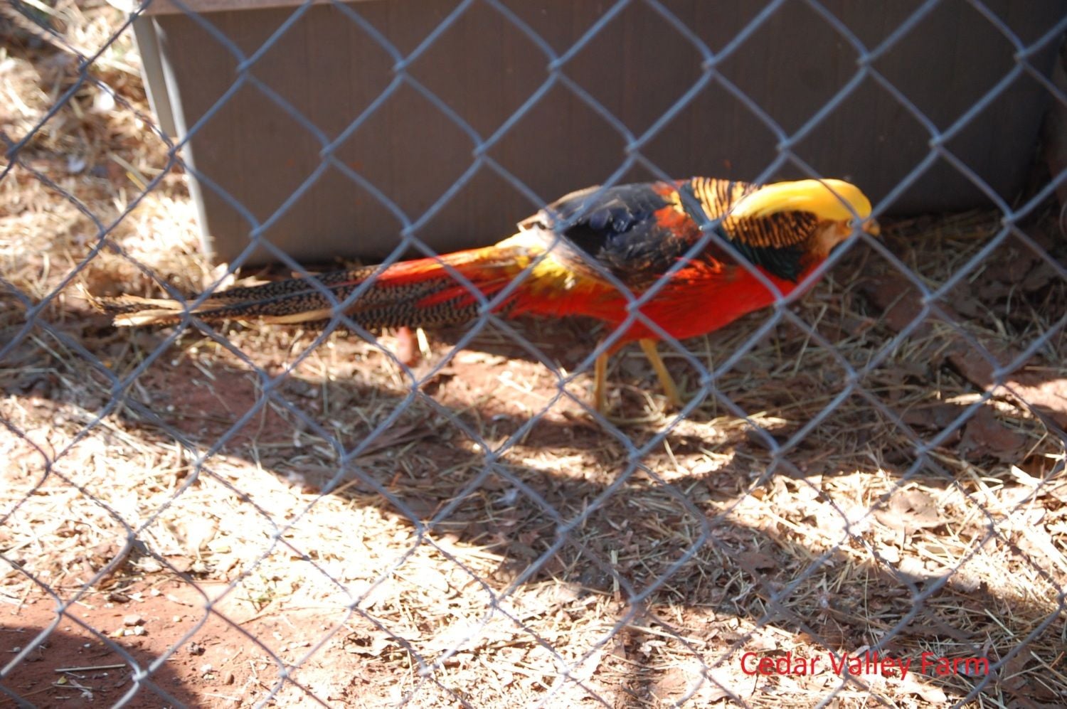 This is my first year. And their first year too. How big are there clutches? I'm not sure if I will take eggs an hatch him myself yet. What is the reason you pull the eggs???I like your golden male pheasant I have a pair of them. Have yours breedeed before or not ? I usually get 2 or 3 nest a year. I let my hen sit on the egs for 2 weeks then I remove the eggs and put them in my incubator