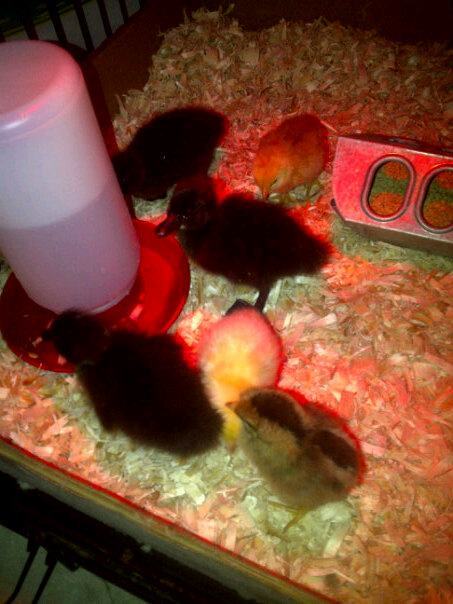 Just had to share a photo of my new babies!! 3 Cayuga ducks, 1 Salmon Favorelles, 1 Buff Golden, and 1 Light Brown Leghorn!! They are just so adorable!