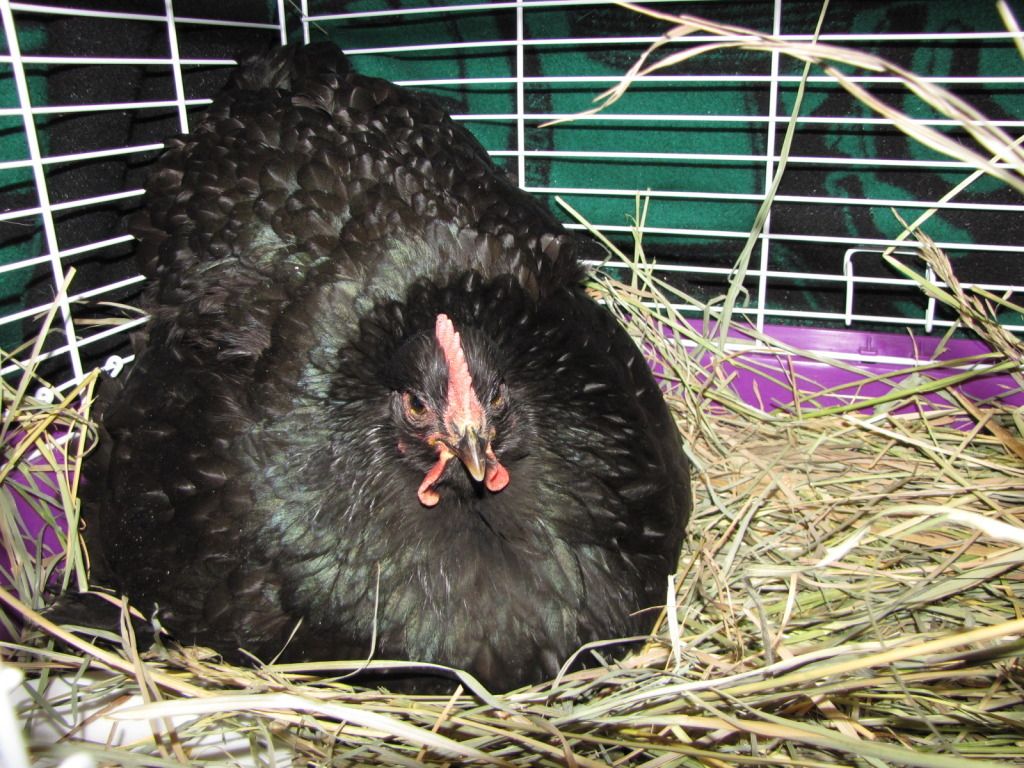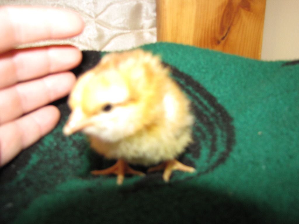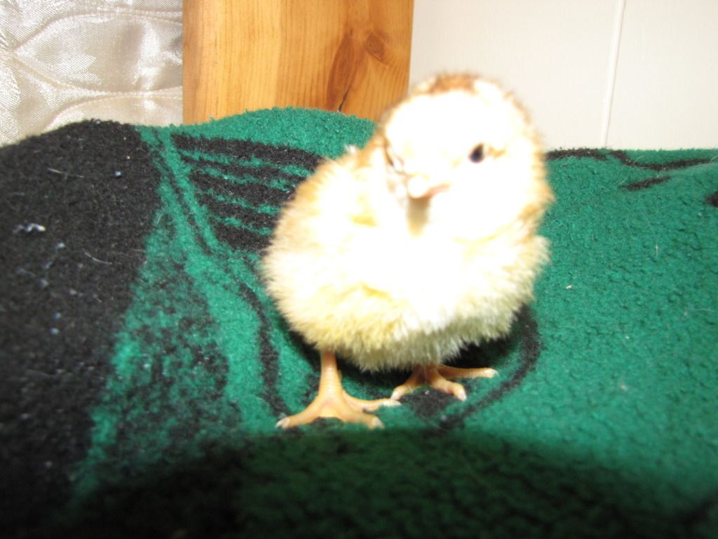 These are the 2 Aloha chicks that we hatched. Jenny our LF Black Cochin is the surrogate mama. The blonde is Surprise and the chipmunk is well... Chipmunk.
