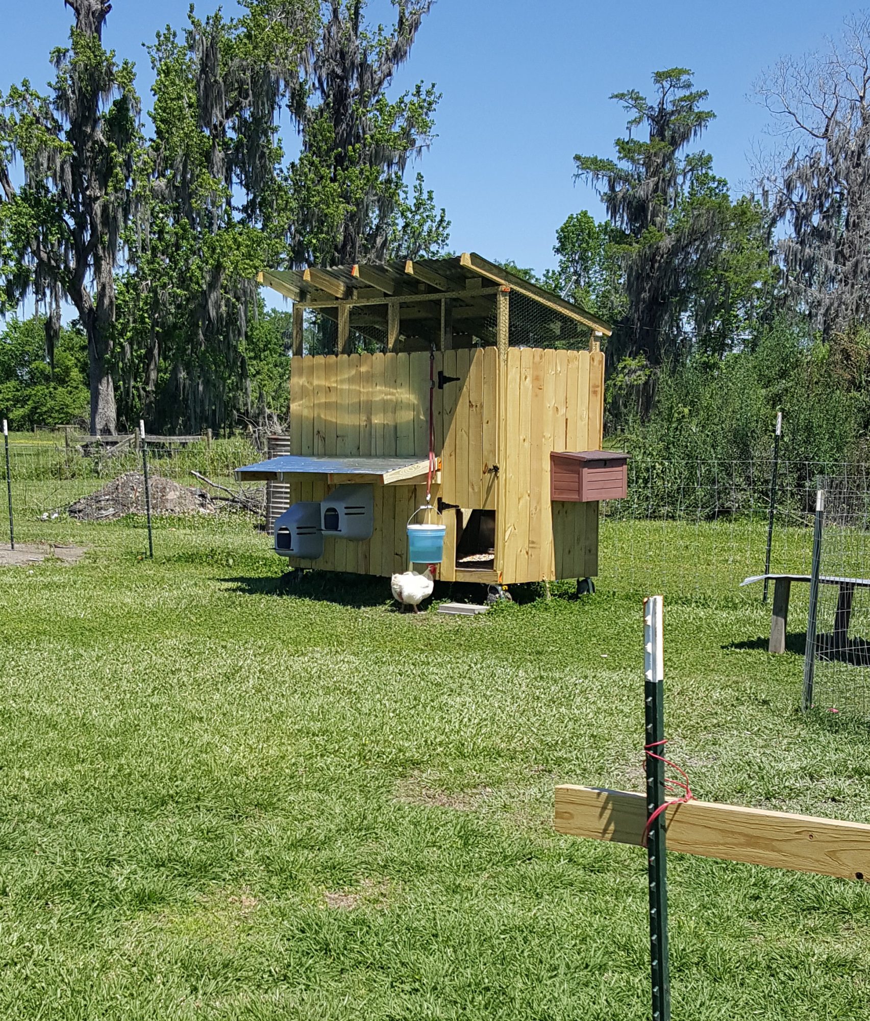 My new build. I'm not a good carpenter lol, but it came ok, i think. I really need one more just like it. it's 4x8" 7' tall in the front 6' in the back. It's also on wheels so when i need to move it I can pull it with the 4 wheeler. Cost me around $400 to build.